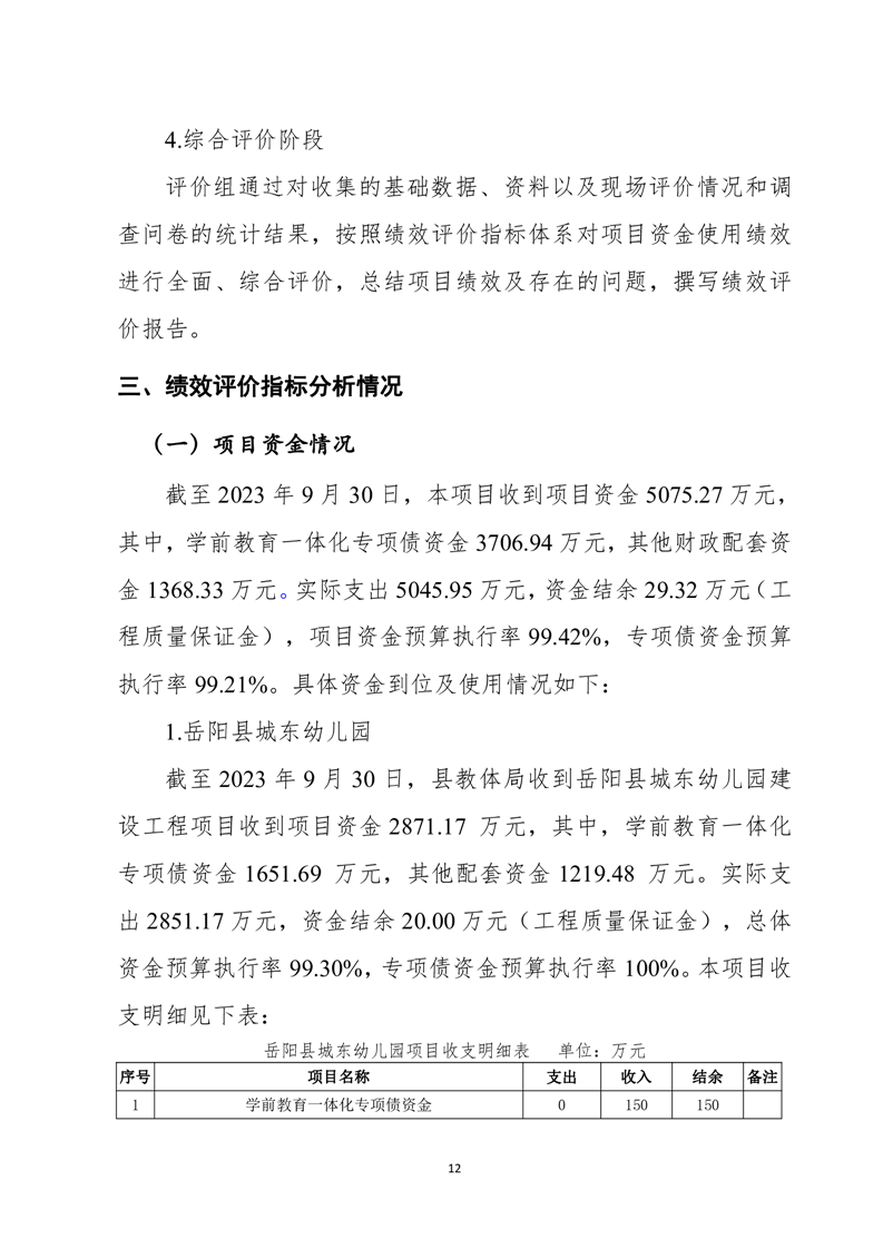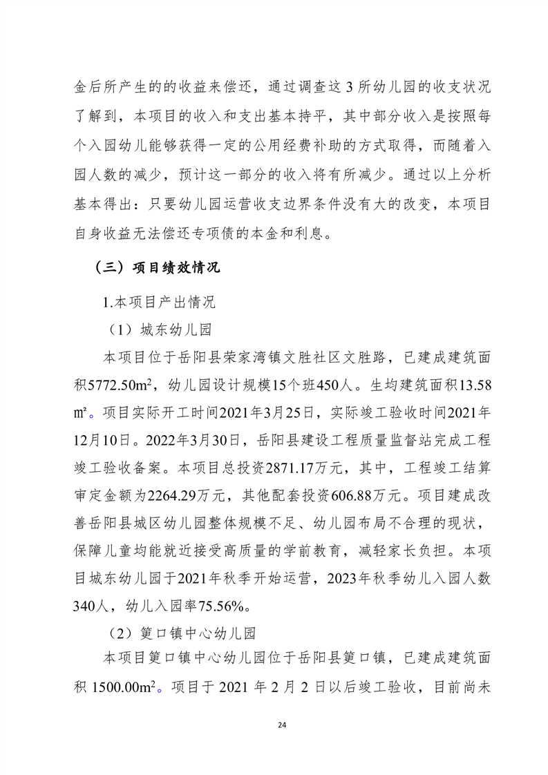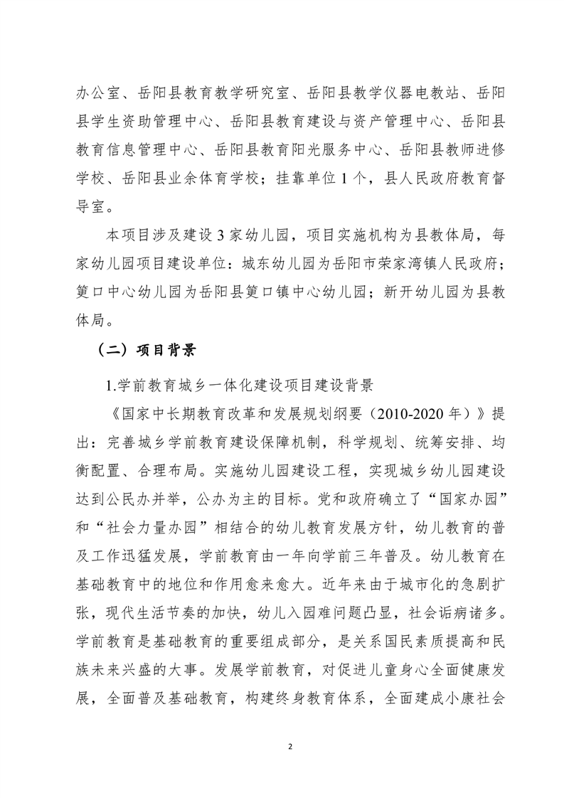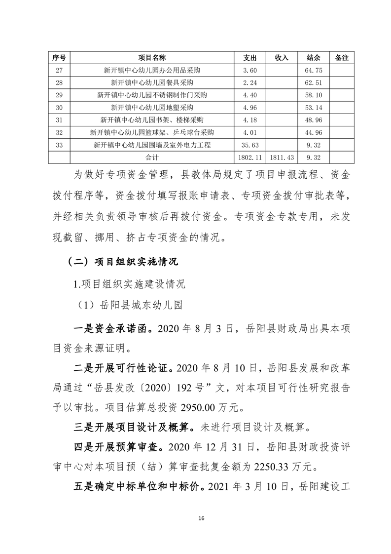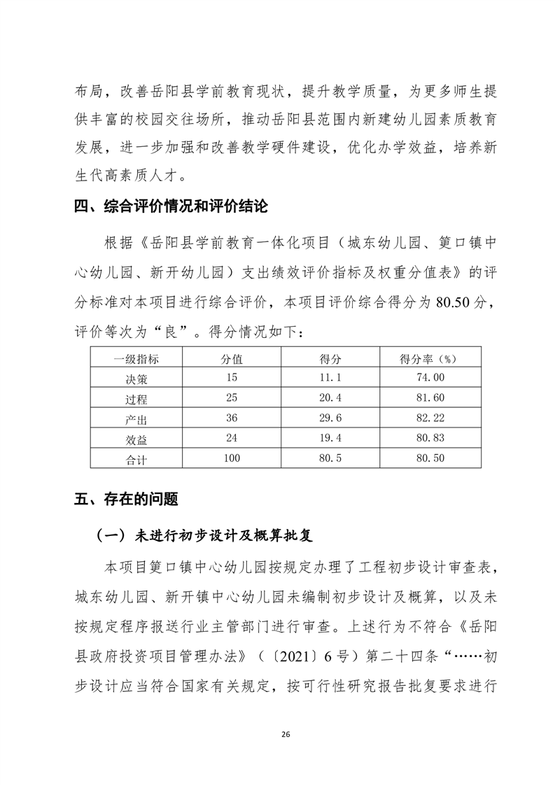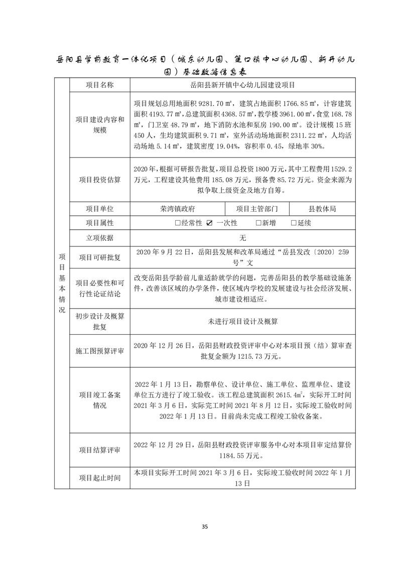 嶽陽縣城東幼兒園、筻口幼兒園、新開幼兒園工程項目支出績效評價報告