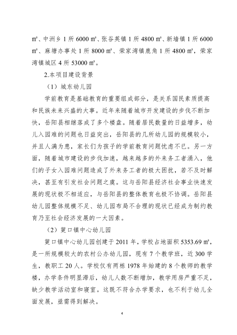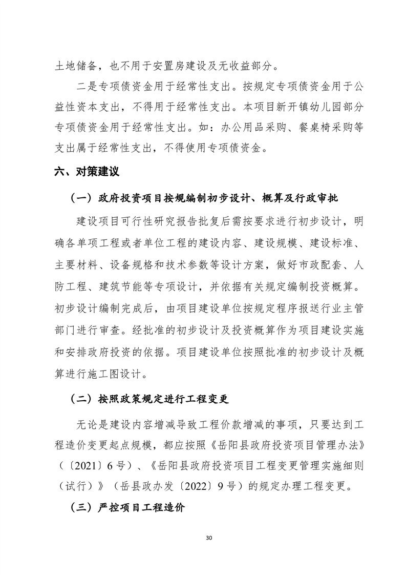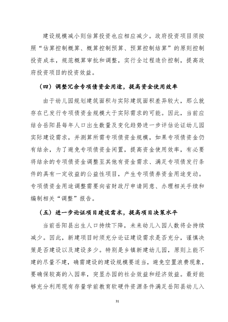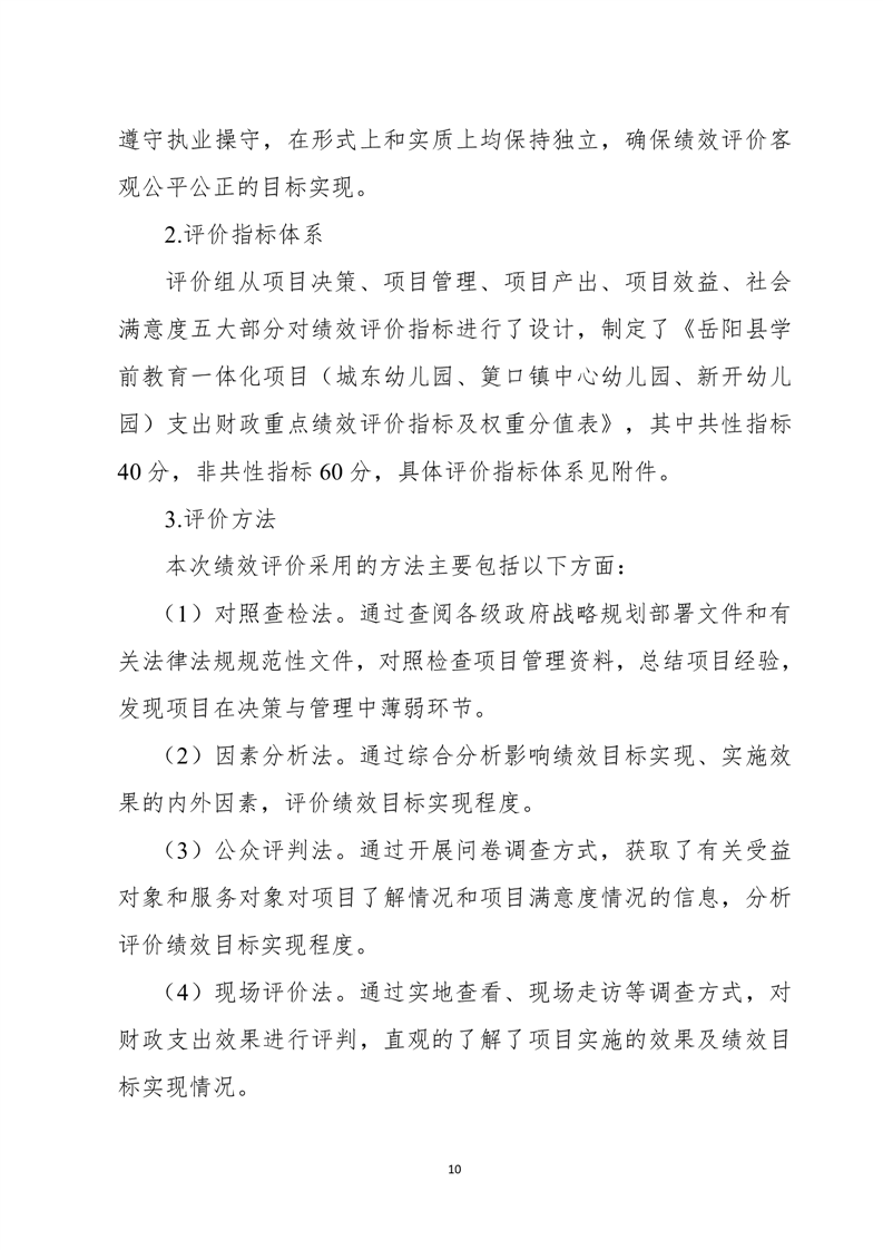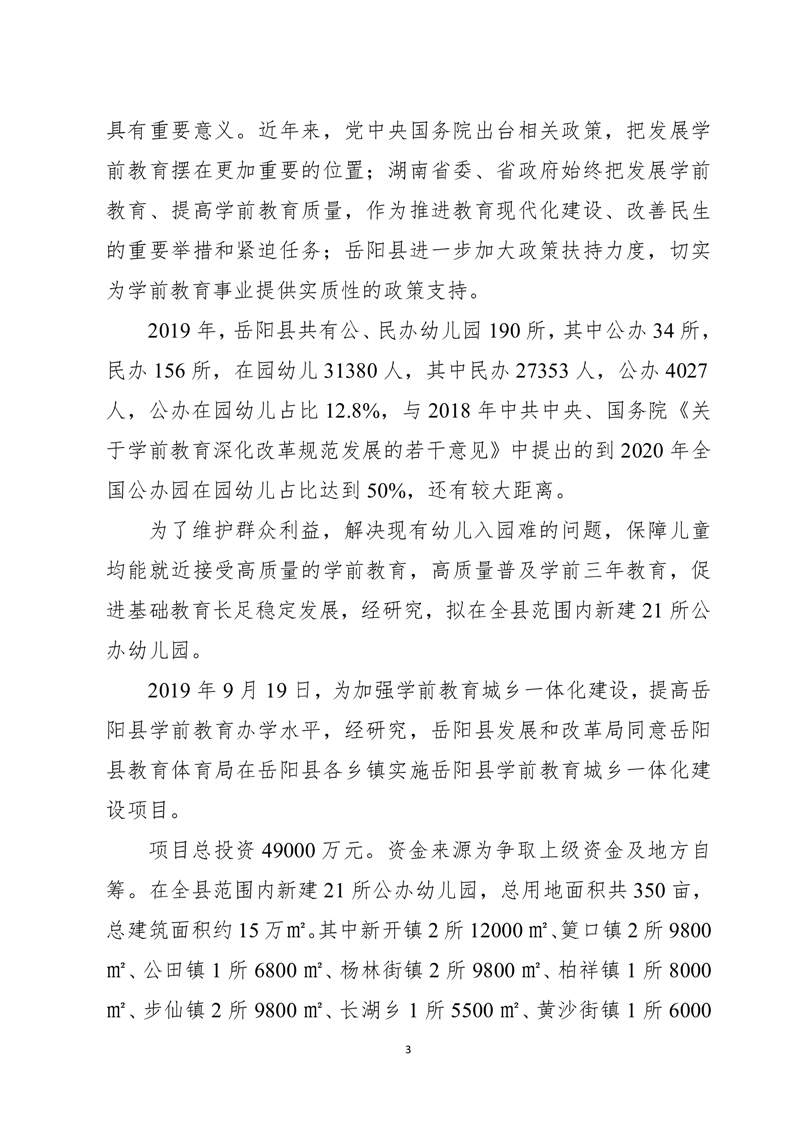 嶽陽縣城東幼兒園、筻口幼兒園、新開幼兒園工程項目支出績效評價報告