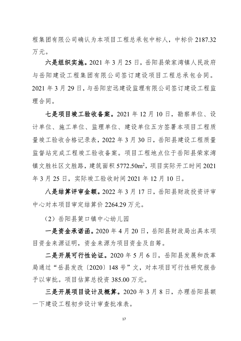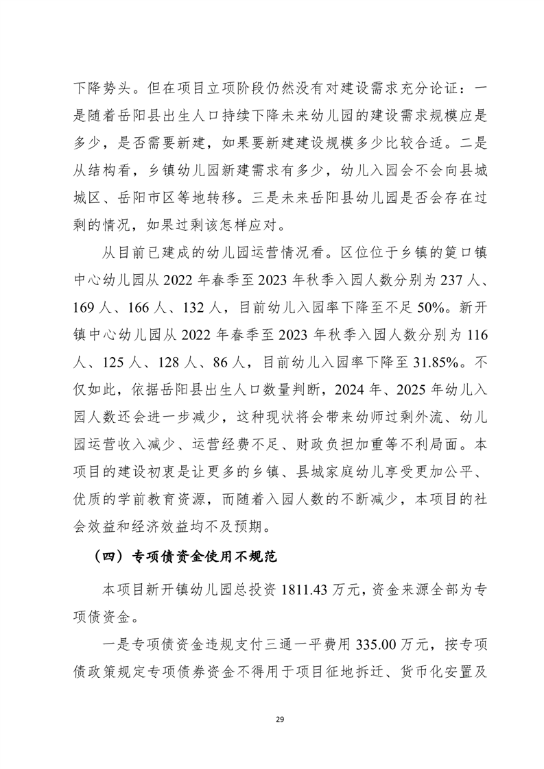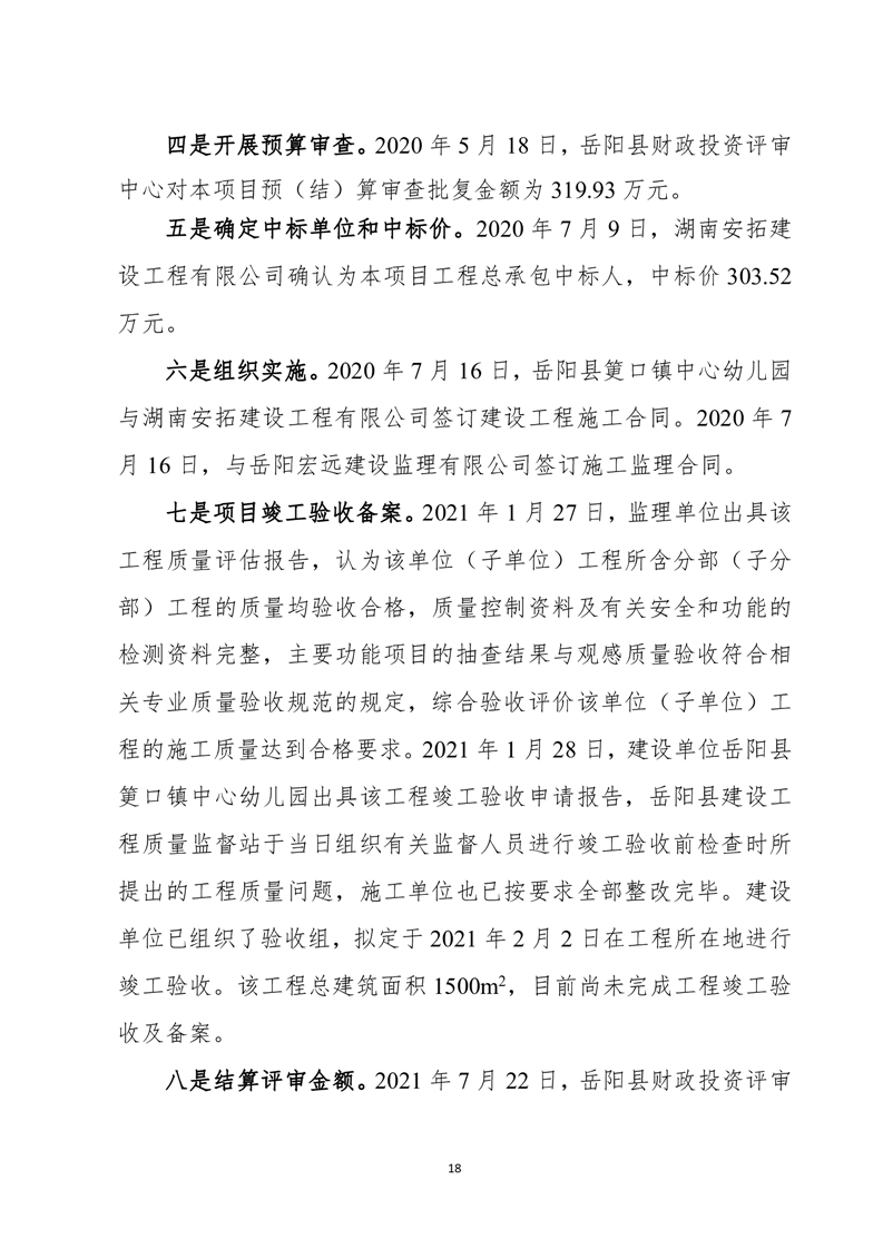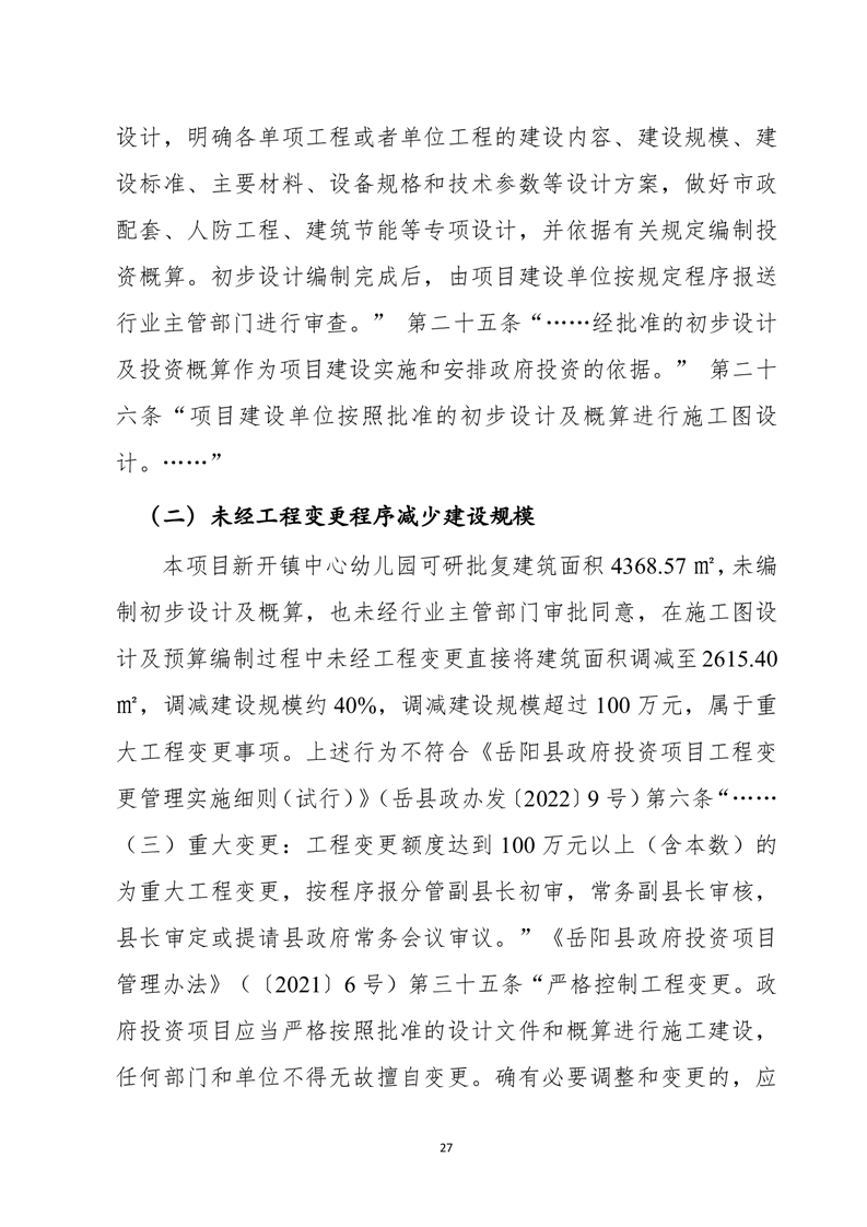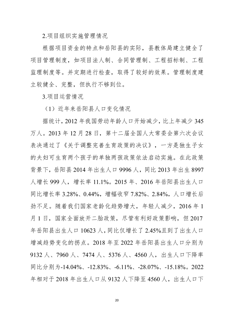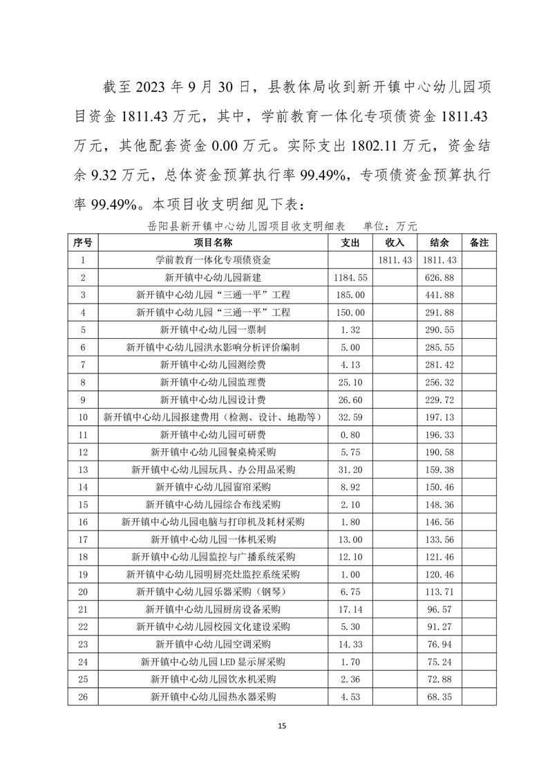 嶽陽縣城東幼兒園、筻口幼兒園、新開幼兒園工程項目支出績效評價報告