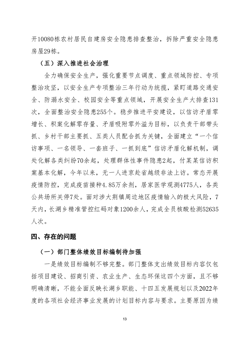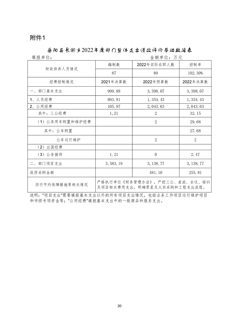 嶽陽縣長湖鄉2022年度部門整體支出績效評價報告