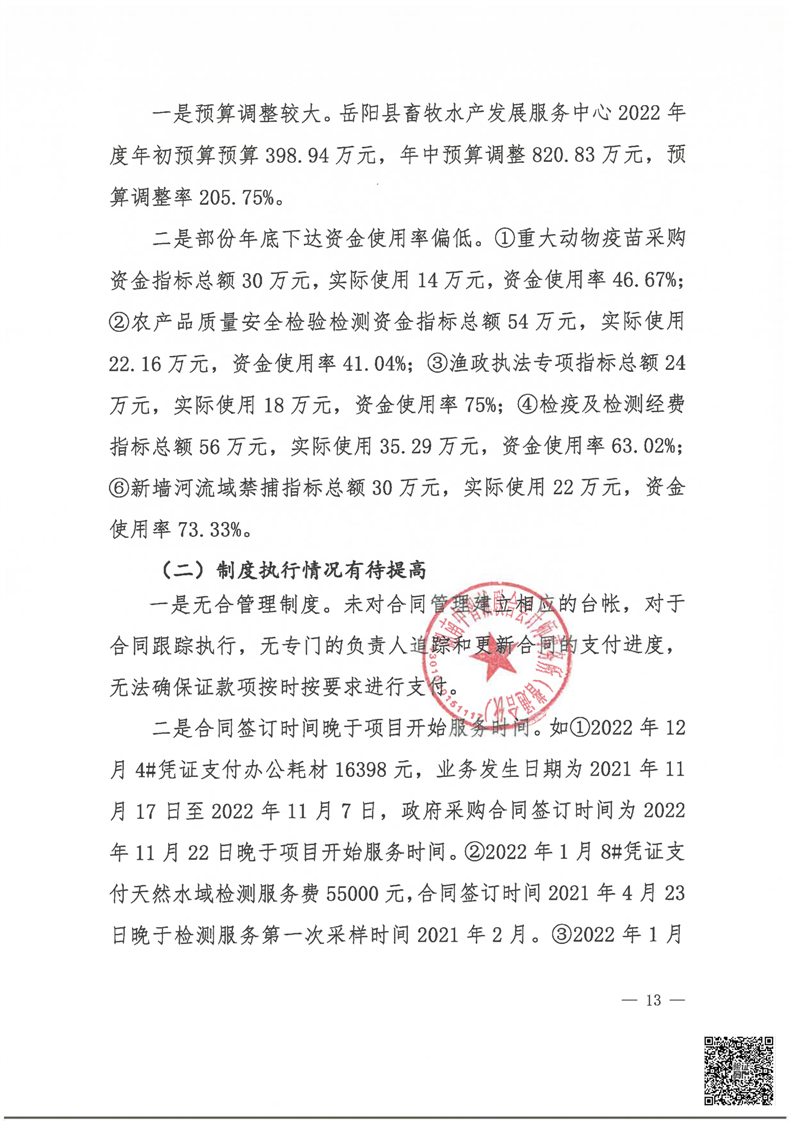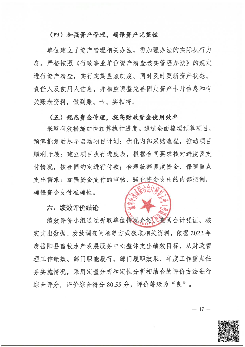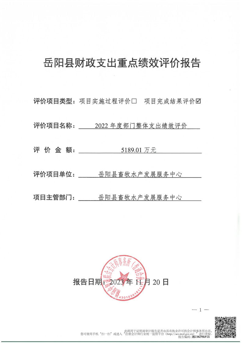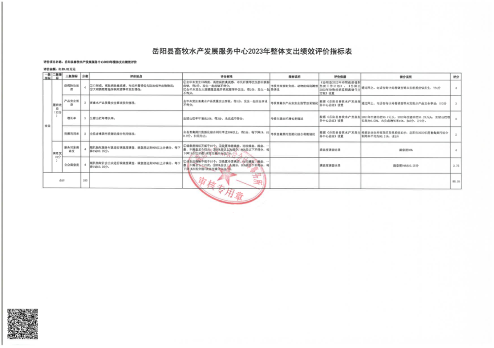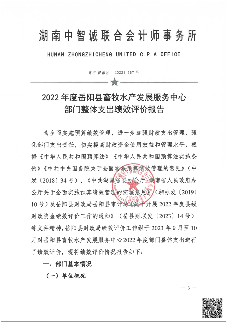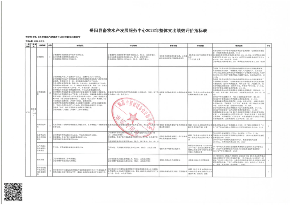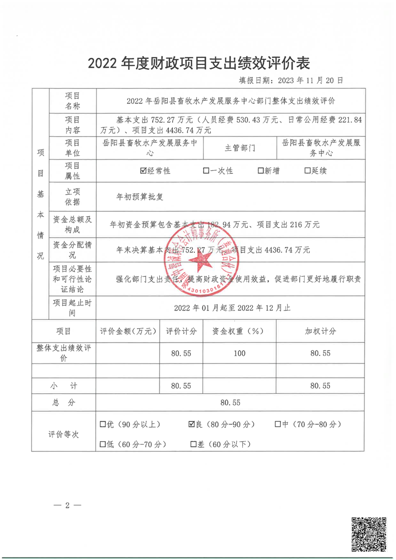 嶽陽縣畜牧水產發展服務中心2022年度部門整體支出績效評價報告
