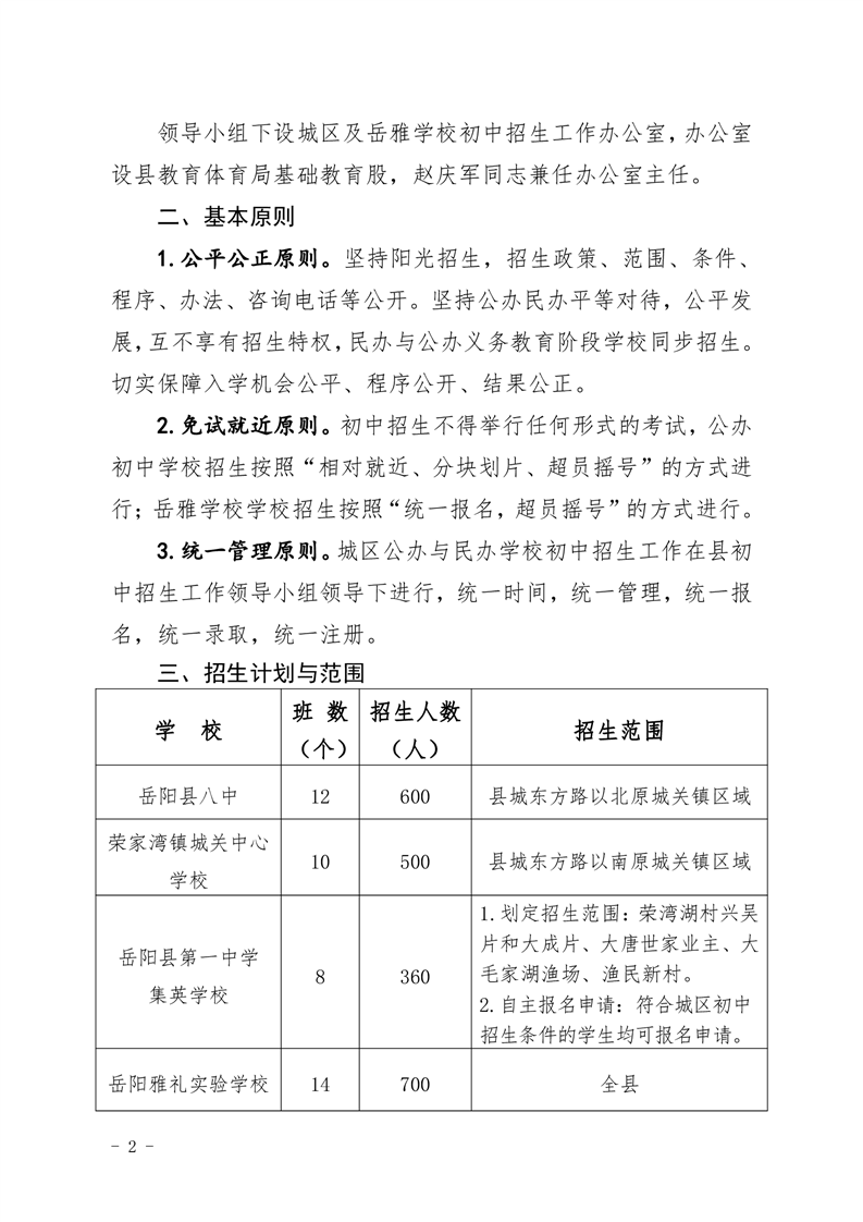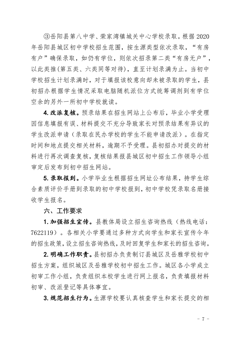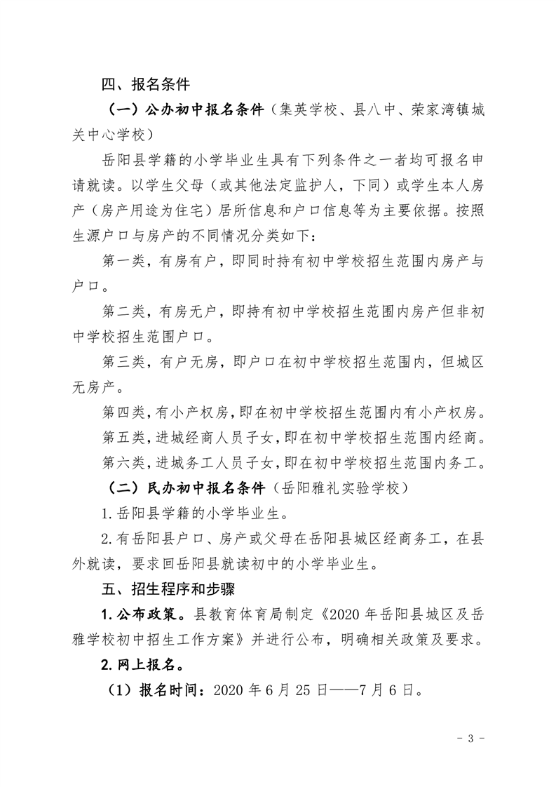 2020年嶽陽縣城區及嶽雅學校初中招生工作方案