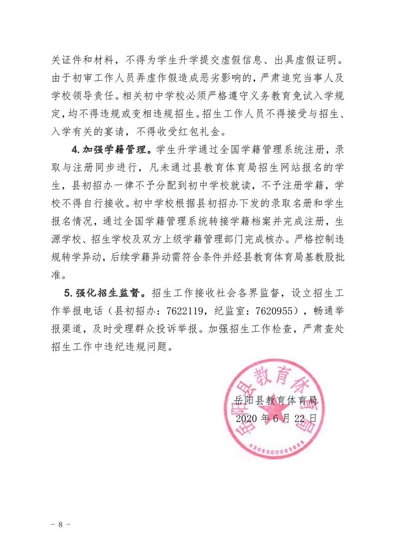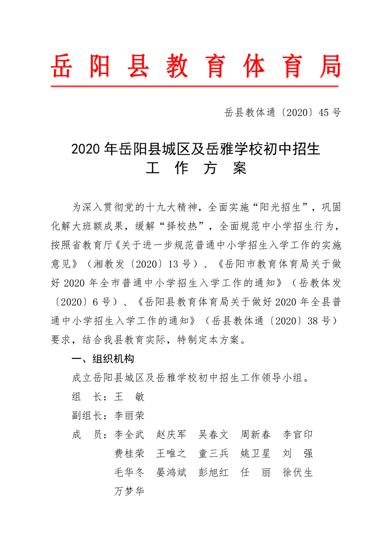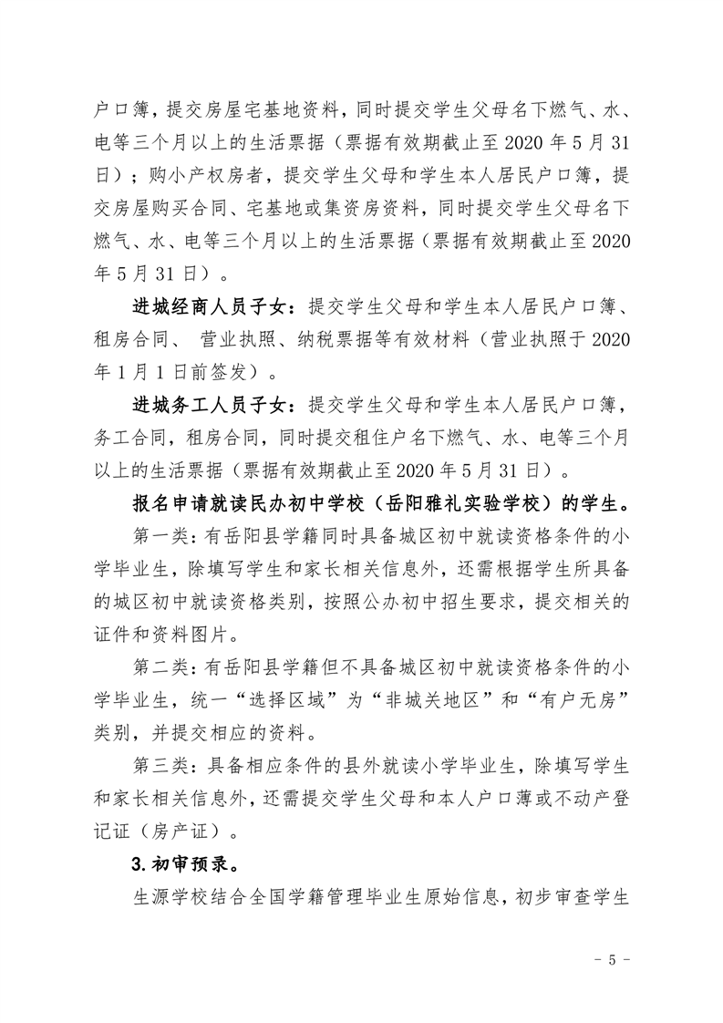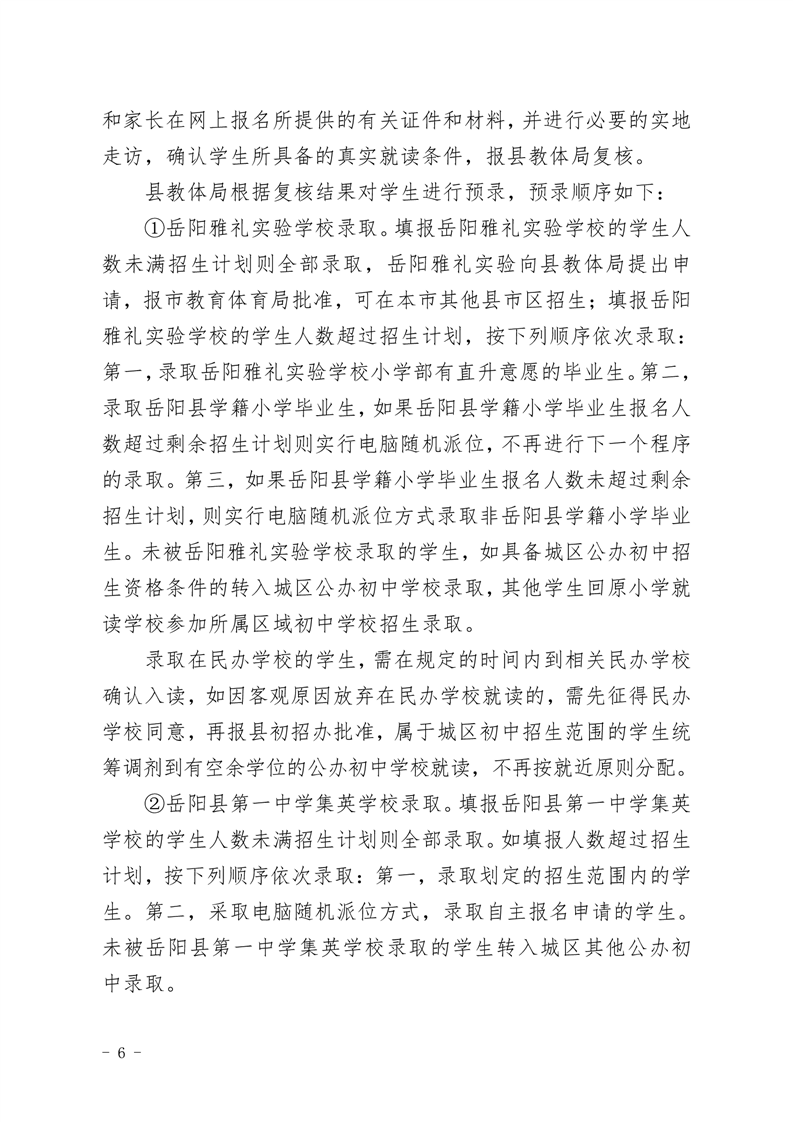 2020年嶽陽縣城區及嶽雅學校初中招生工作方案