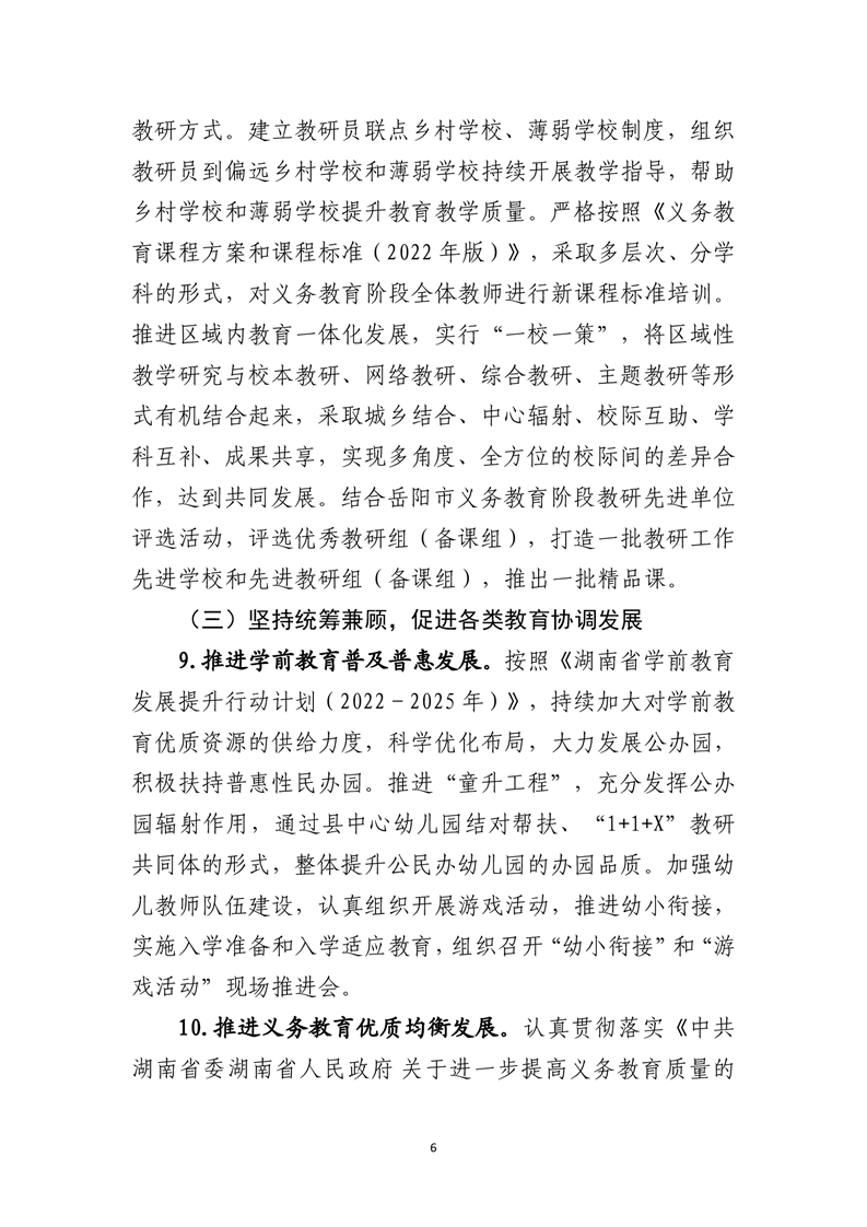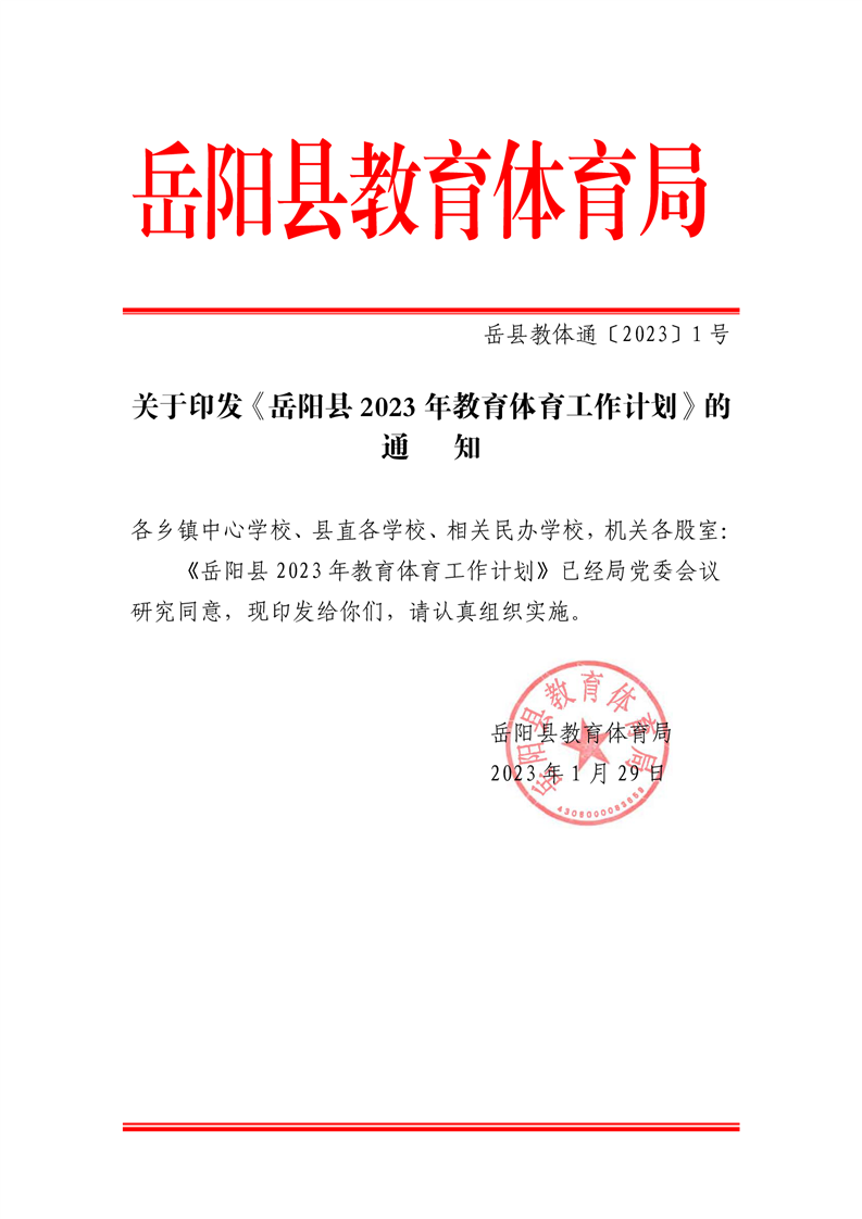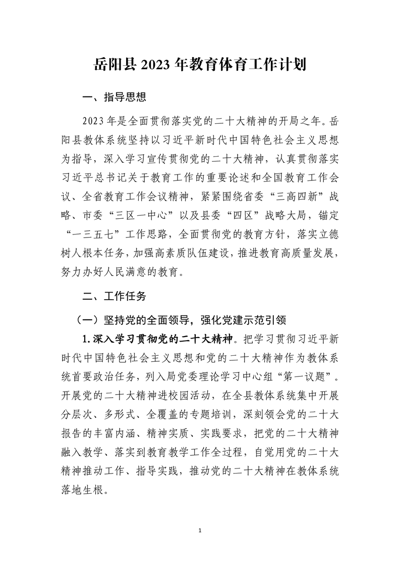嶽陽縣2023年教育體育工作計劃