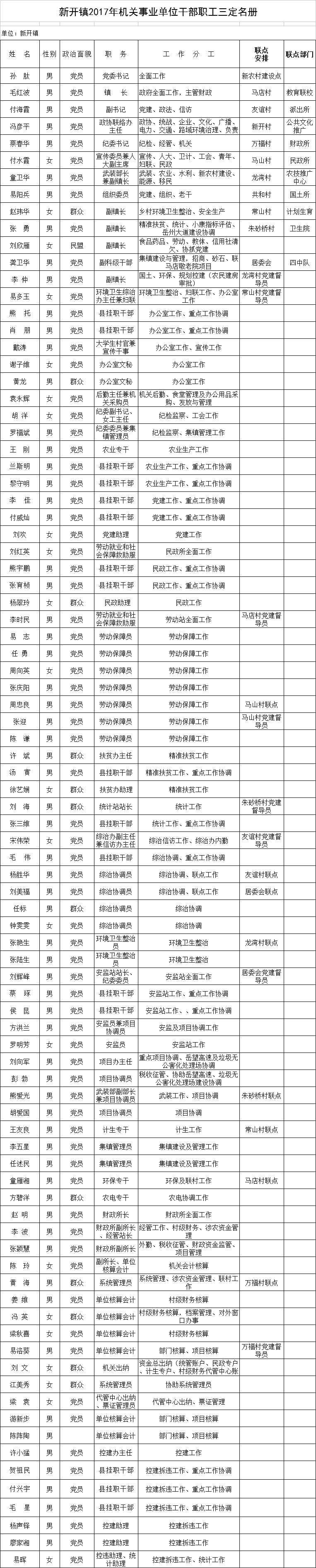 新開鎮2017年幹部職工三定名冊