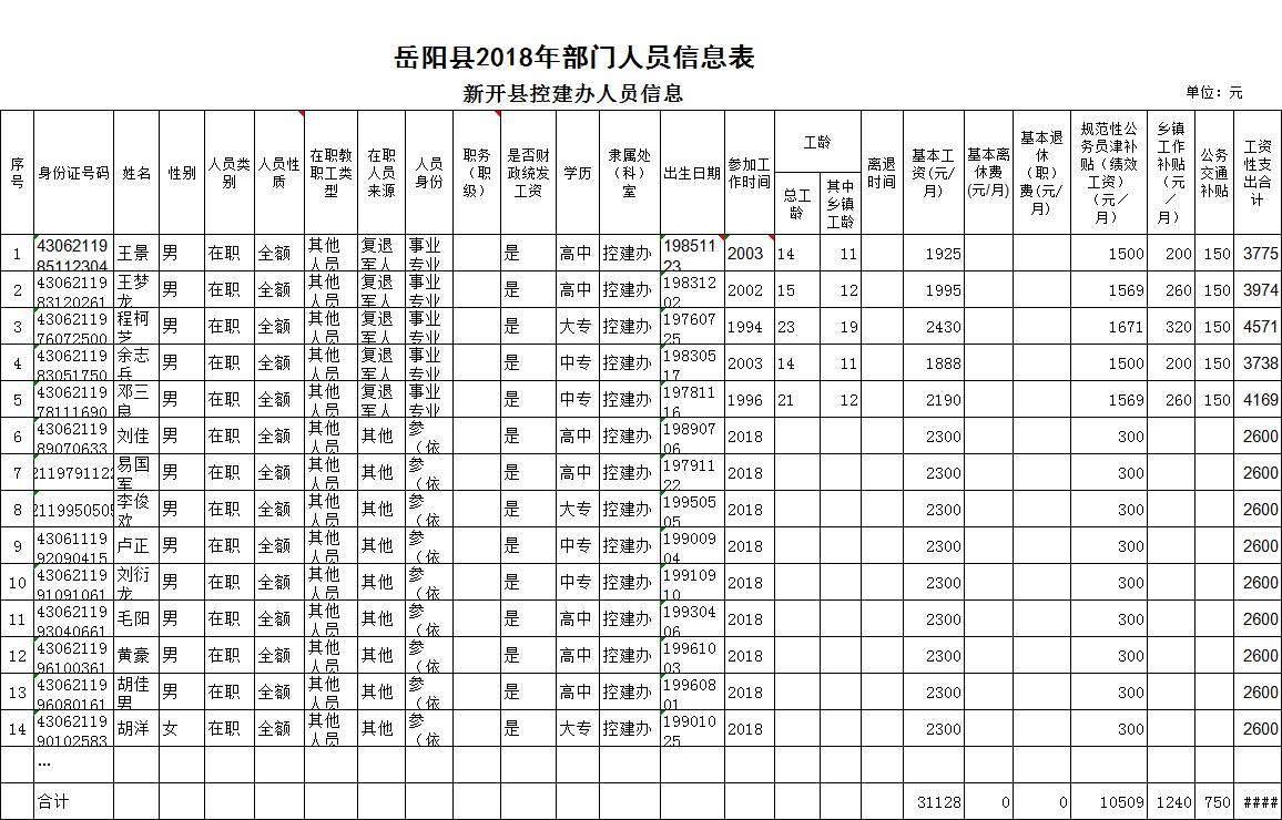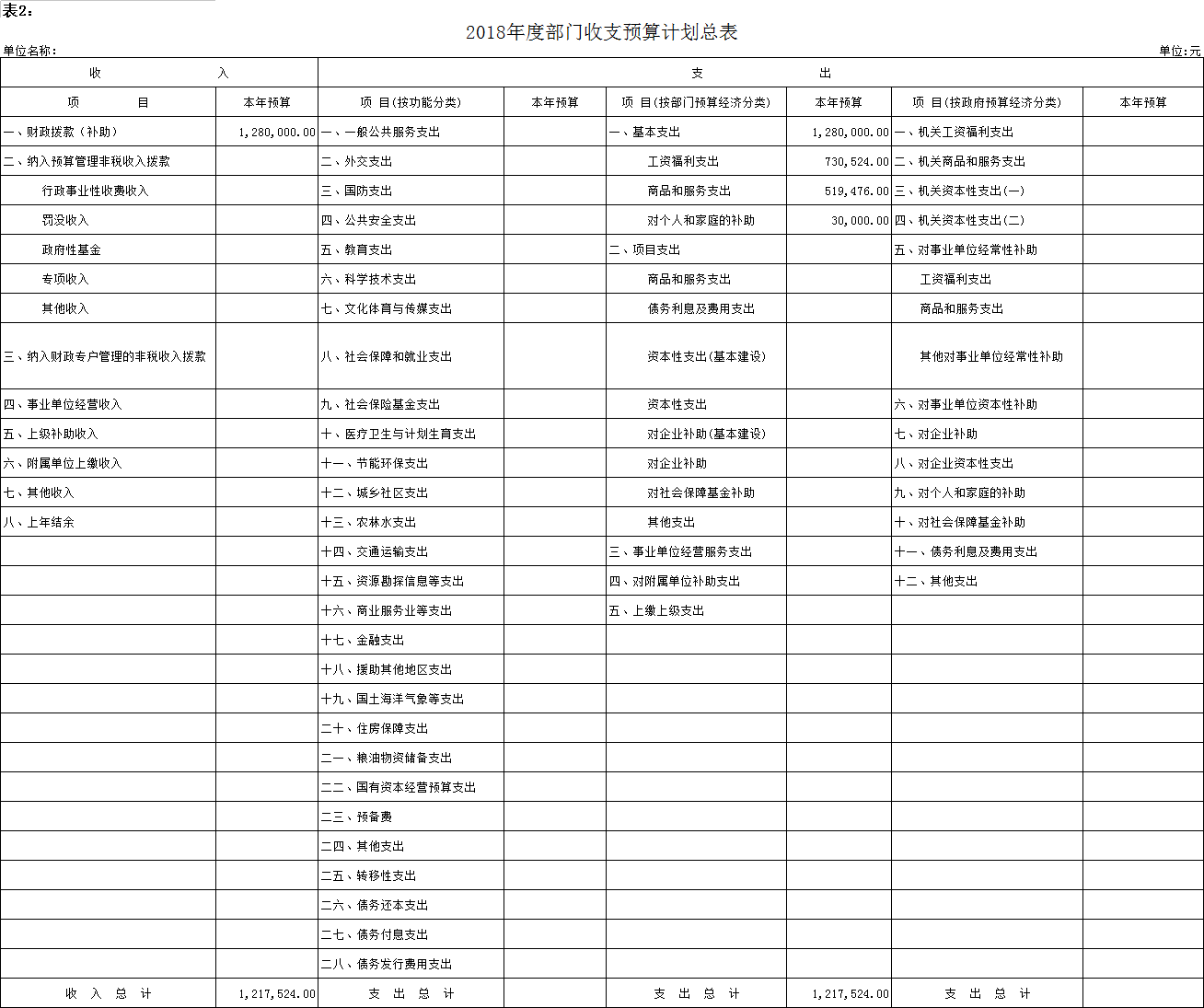 2018年新開鎮控建辦預算表