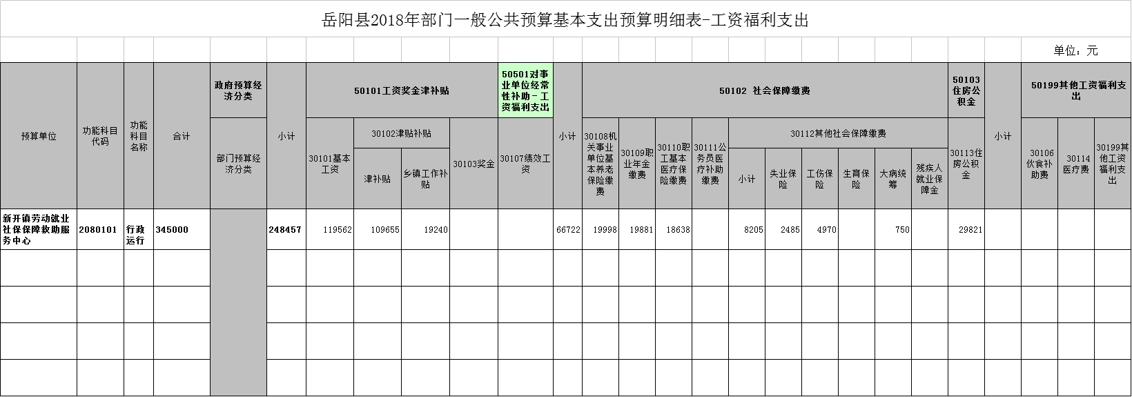 2018年新開鎮勞動站部門預算