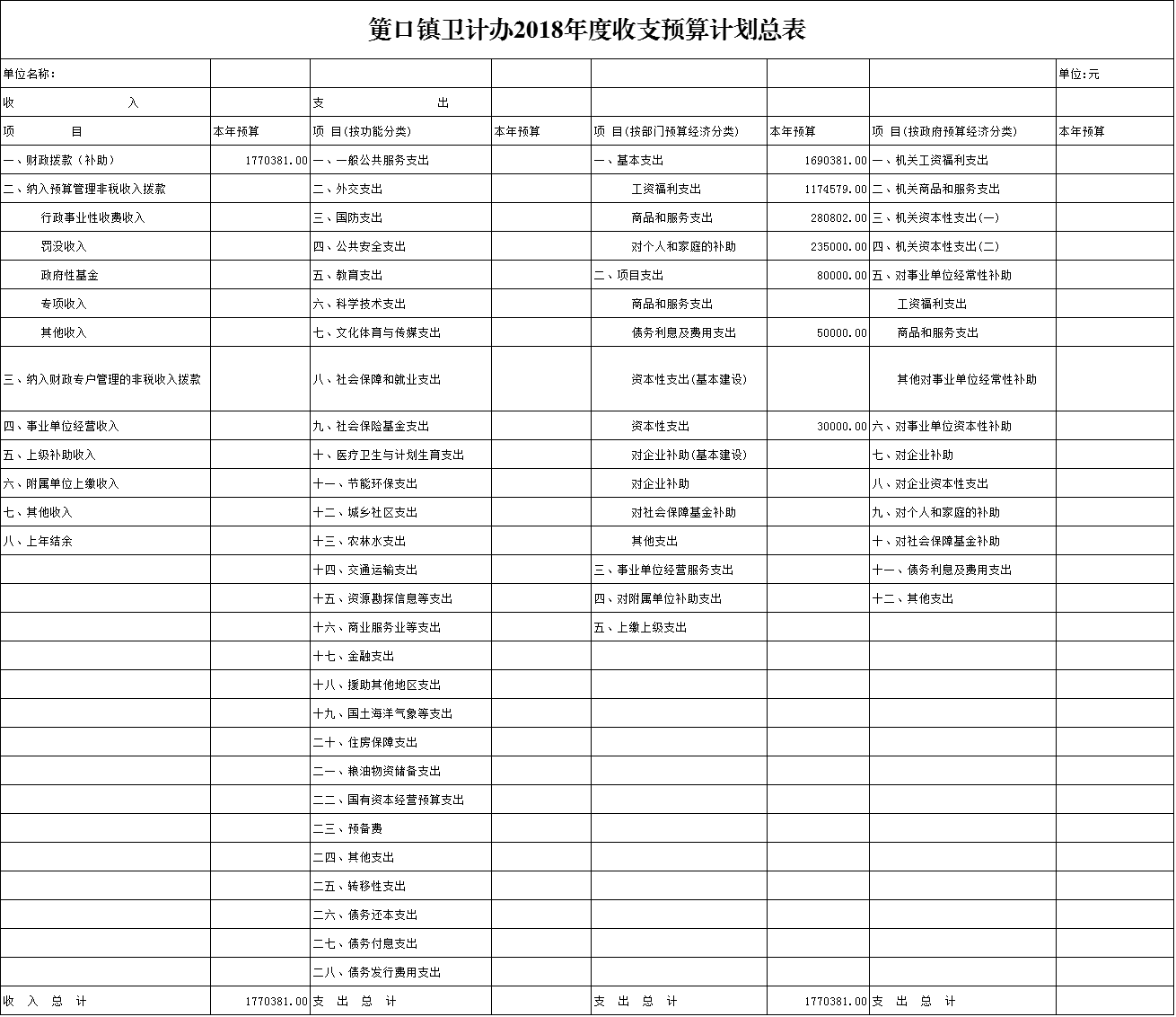 筻口鎮衛計辦2018年度收支預算計劃總表