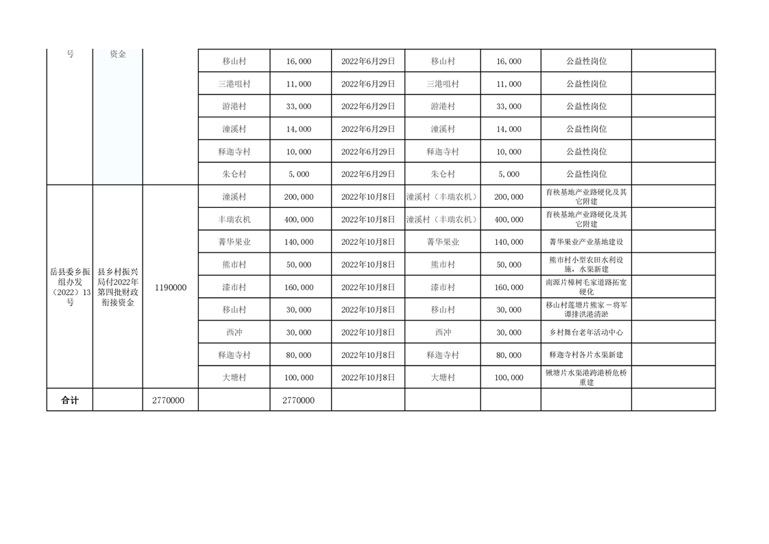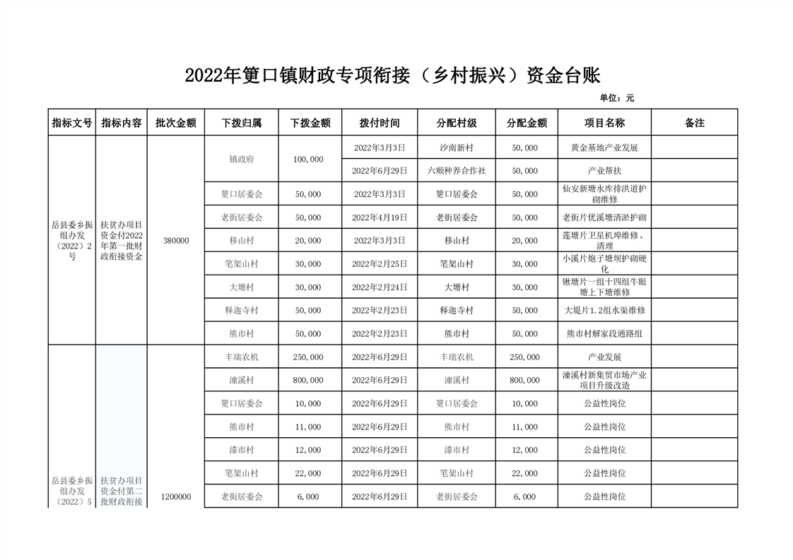 2022年筻口鎮財政專項銜接(鄉村振興)資金公示
