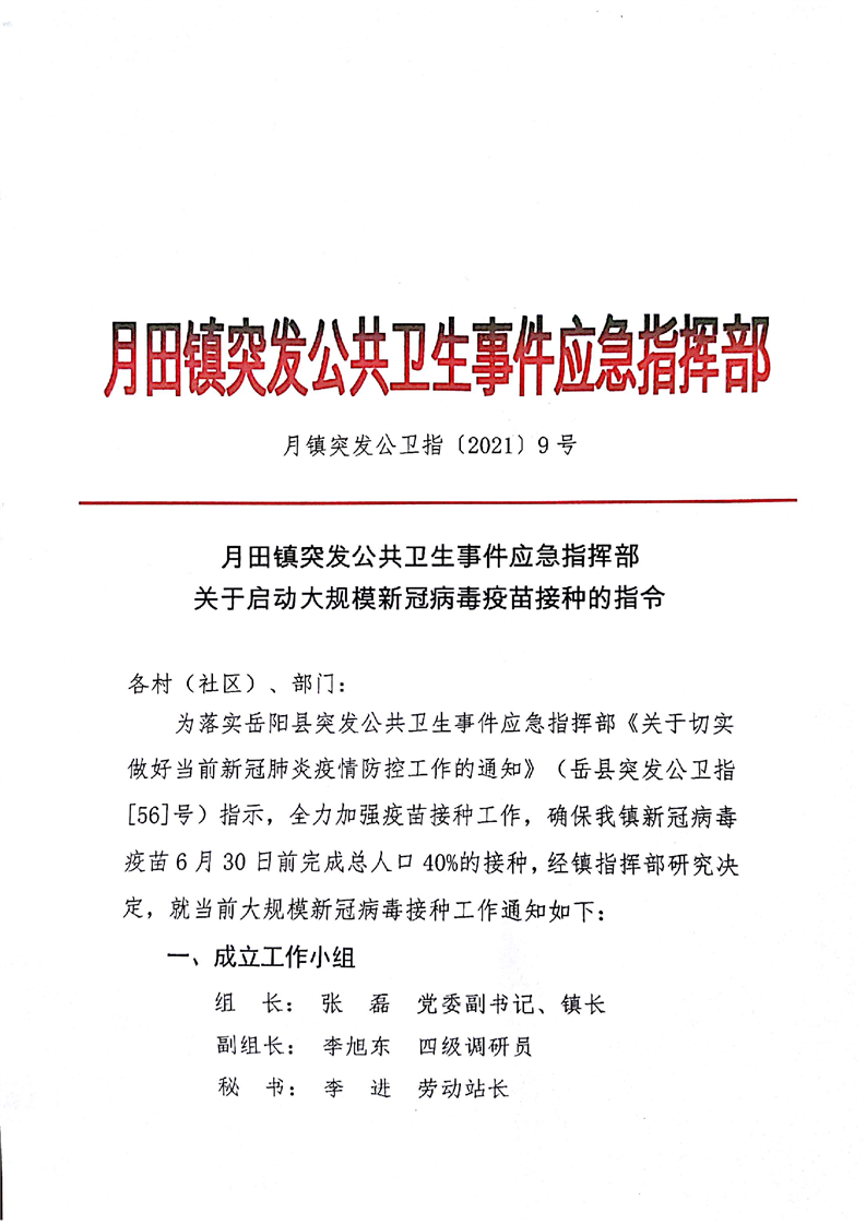 關於啟動大規模新冠病毒疫苗接種的指令