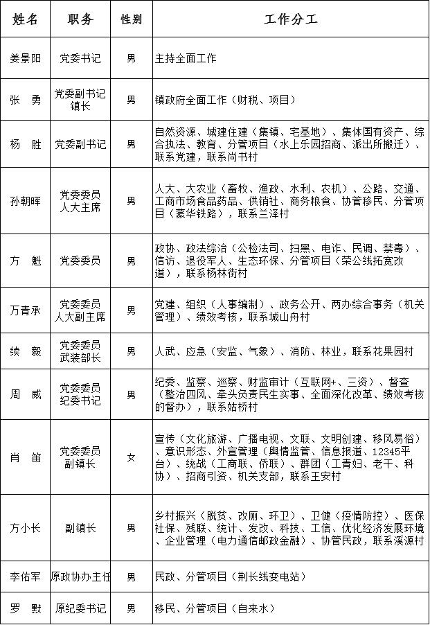 2022年楊林街鎮黨政班子分工