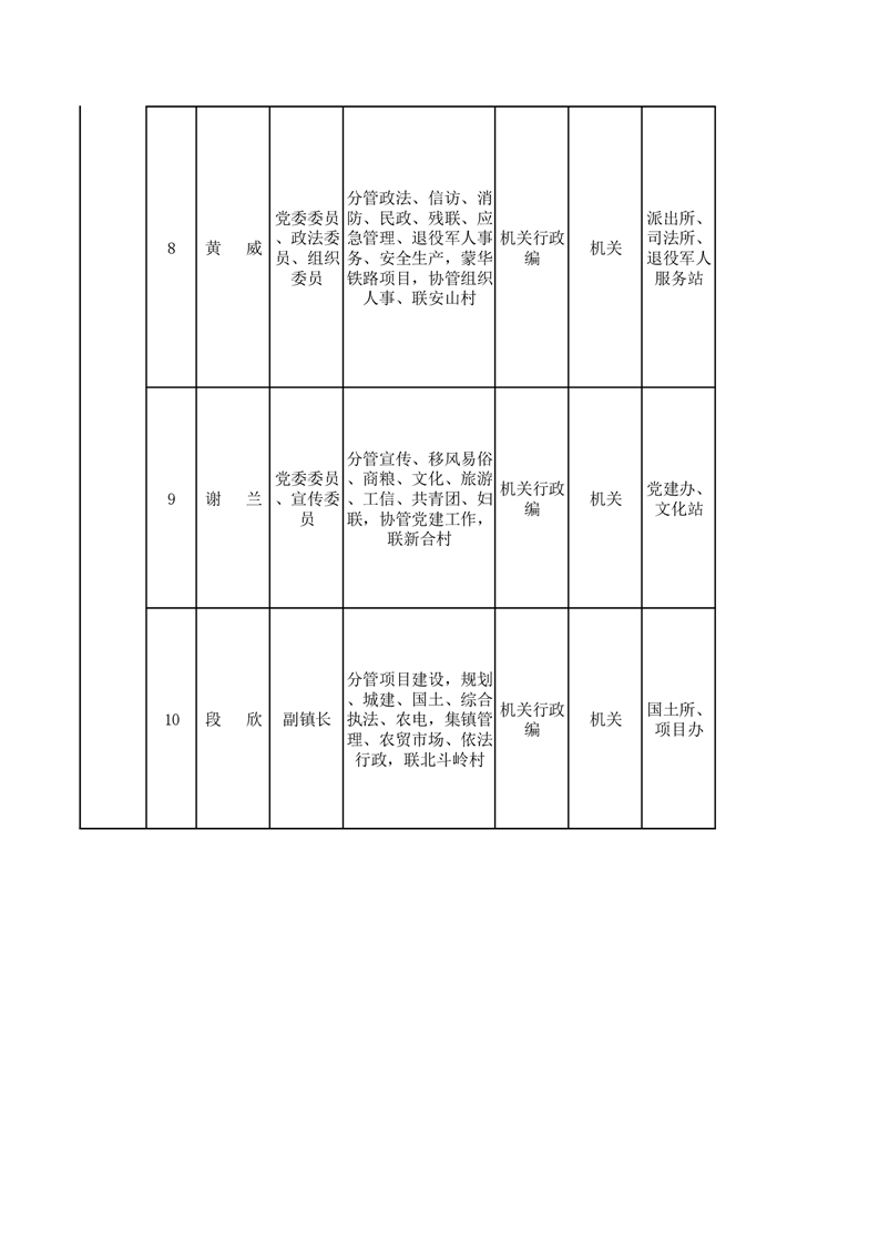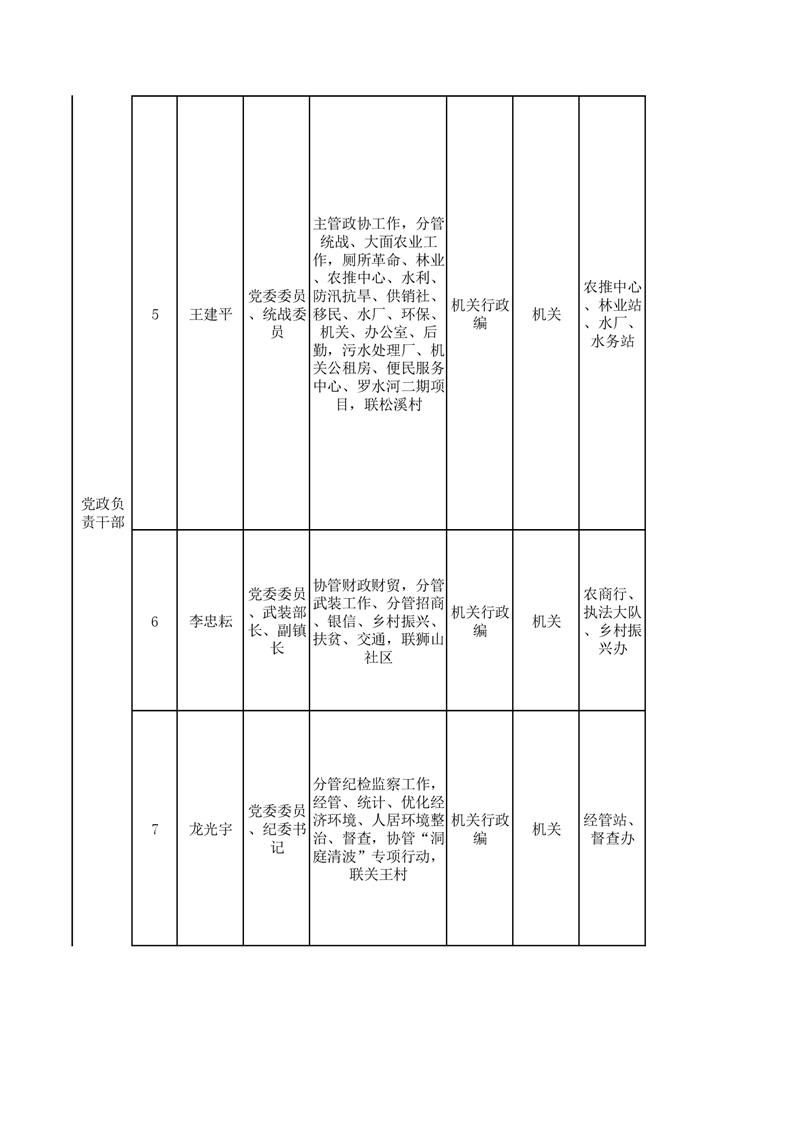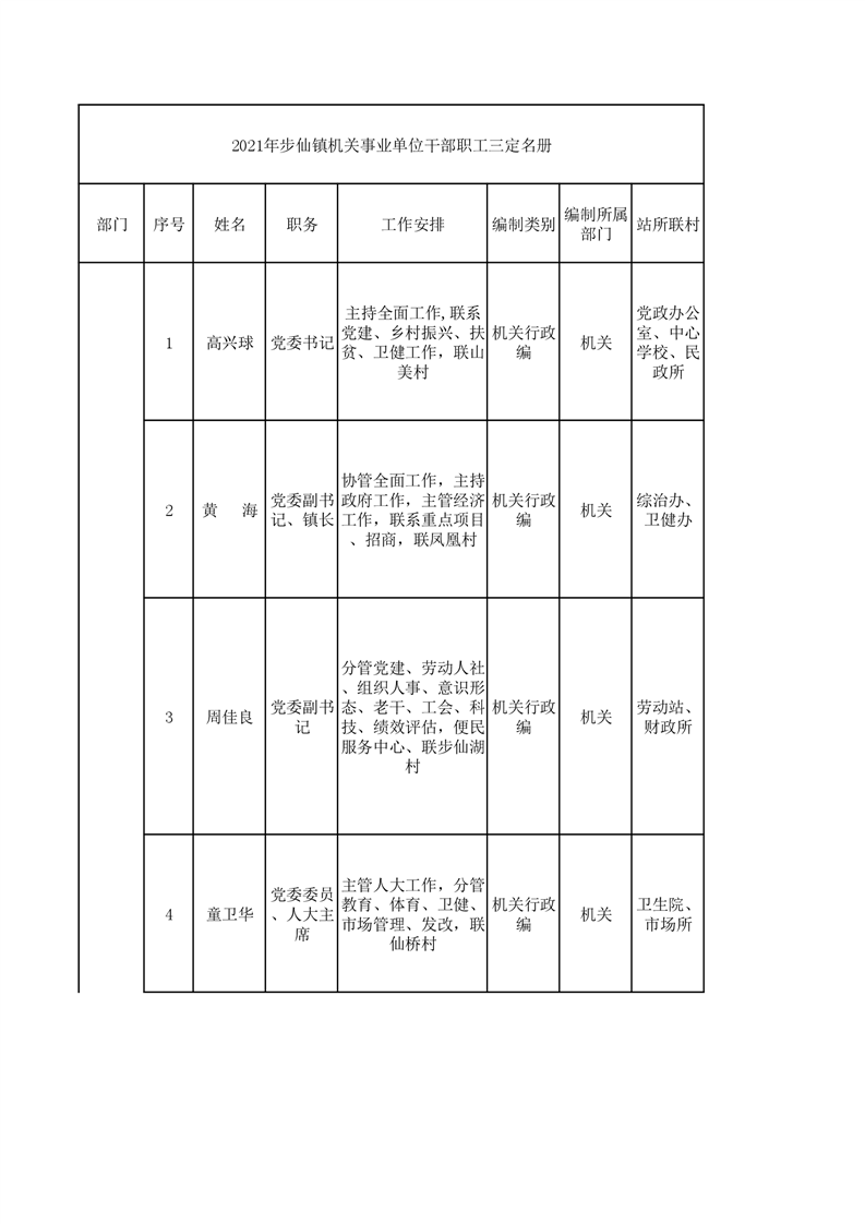 2021年步仙鎮黨政班子成員工作分工