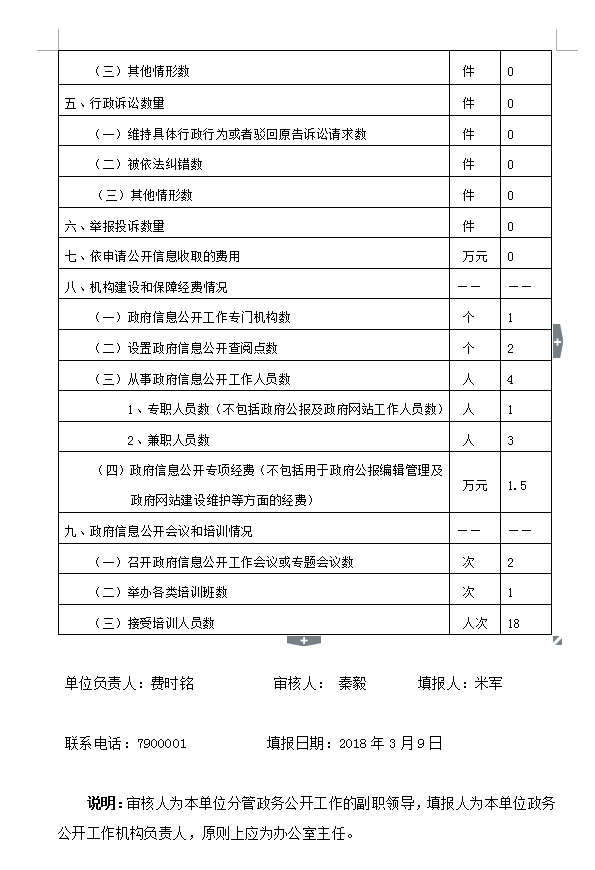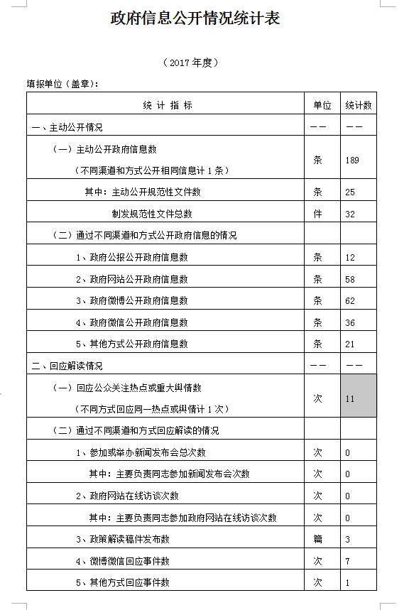 (一)從事政府信息公開工作人員情況。2017年,從事政府信息公開工作人員共4人,1專職,3兼職,各職能站辦所人員配合完成,明確了責任,確保了政府信息公開工作的順利開展。