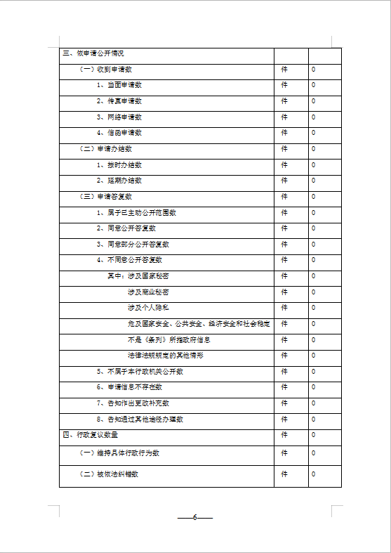 全年,未發生因政府信息公開而被申請行政複議、提起行政訴訟的案件。