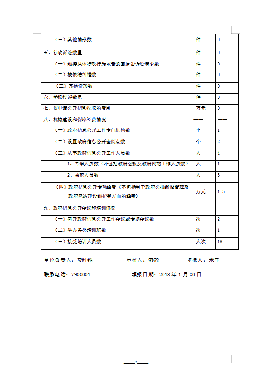 (一)從事政府信息公開工作人員情況。2018年,從事政府信息公開工作人員共4人,1專職,3兼職,各職能站辦所人員配合完成,明確了責任,確保了政府信息公開工作的順利開展。