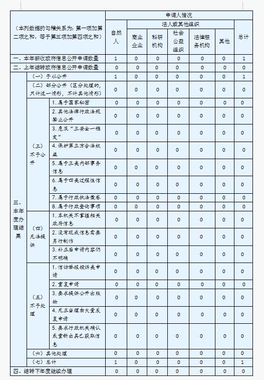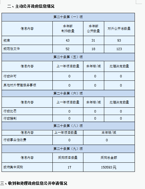 政府信息公開窗口接待谘詢65人次,受理政府信息公開口頭申請36宗,均已現場答複;未發生書麵申請公開情況。