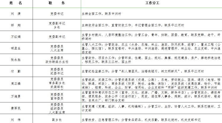 2020年中洲鄉黨政領導工作分工安排表