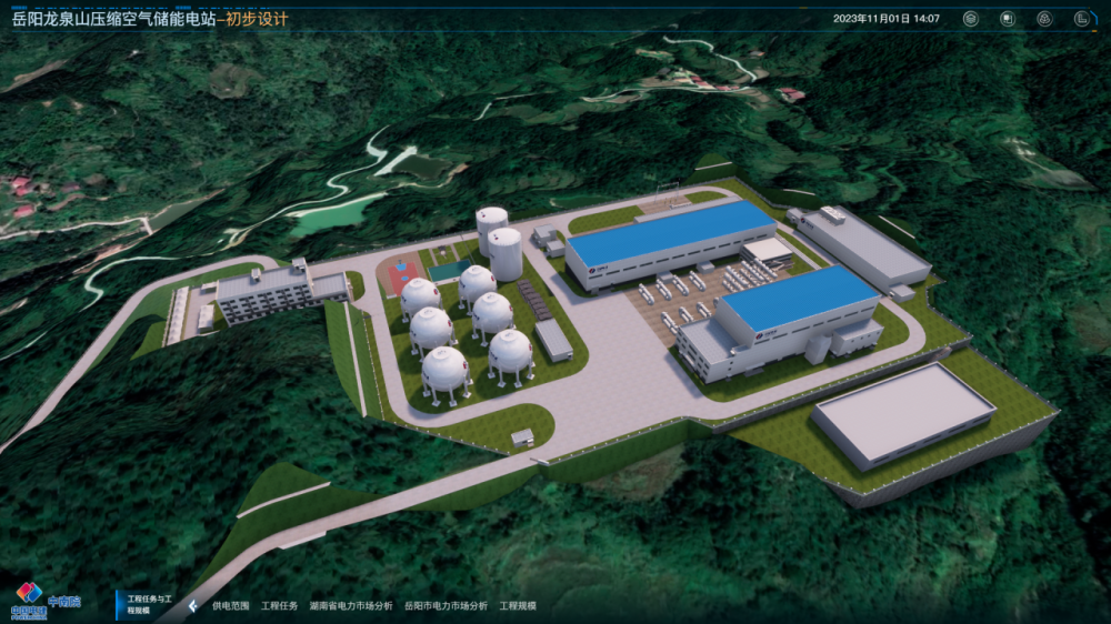 龍泉山壓縮空氣儲能電站是湖南省首個300MW人工洞室壓縮空氣儲能項目,2022年12月完成可行性研究報告審查。項目位於公田鎮飛雲村,距離嶽陽市區約35公裏,距離嶽陽縣城約40公裏,附近分布京港澳高速、許廣高速、杭瑞高速、G107國道,可接入京廣鐵路、武廣高鐵,交通條件便利。
