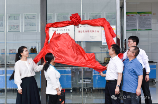 4月20日,湖南農業大學化學與材料科學學院組隊赴嶽陽縣湖南田味農業科技有限公司考察交流,並在此舉行“湖南省研究生拔尖創新人才聯合培養基地”和“湖南嶽陽智慧育秧科技小院”揭牌儀式。化材學院院長喻鵬、研究生院副院長歐立軍、嶽陽縣科協主席胡光霞,聯合培養基地、科技小院負責人夏茂及企業負責人董敏芳共同揭牌 。