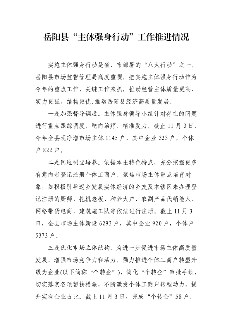 嶽陽縣主體強身行動工作推進情況