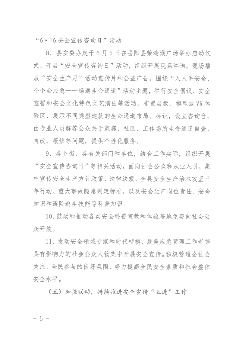 嶽陽縣2024年“安全生產月”活動實施方案