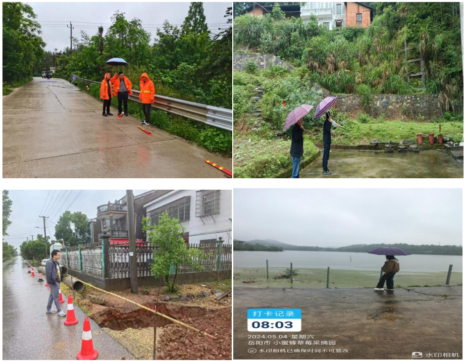 5月4日,縣公路建設和養護中心主任吳紅兵帶隊深入鄉鎮檢查督導道路交通設施管養情況,在公田鎮桃甘線發現一處路麵塌方安全隱患,並現場處置。步仙鎮鎮長楊法新、中洲鄉鄉長李福緣等鄉鎮黨政領導幹部帶隊檢查地質災害點、道路安全隱患點。新開鎮、筻口鎮、麻塘街道等鄉鎮(街道)政府組織鎮村幹部加強對切坡建房和風險地質災害點的密切關注和查看,加強巡查對水庫安全巡查,開展清基掃障等防汛工作。