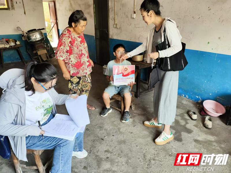 嶽陽市嶽陽縣民政局工作人員入戶走訪宣傳社會救助政策。
