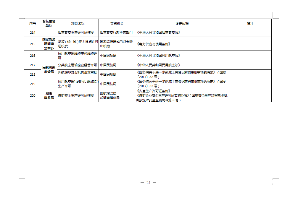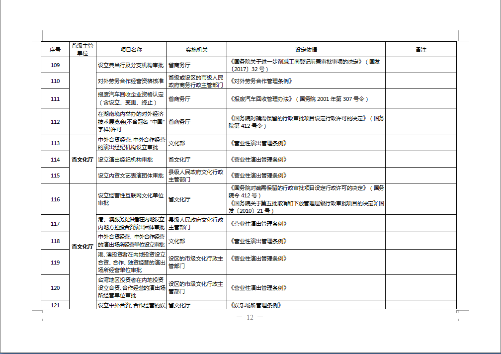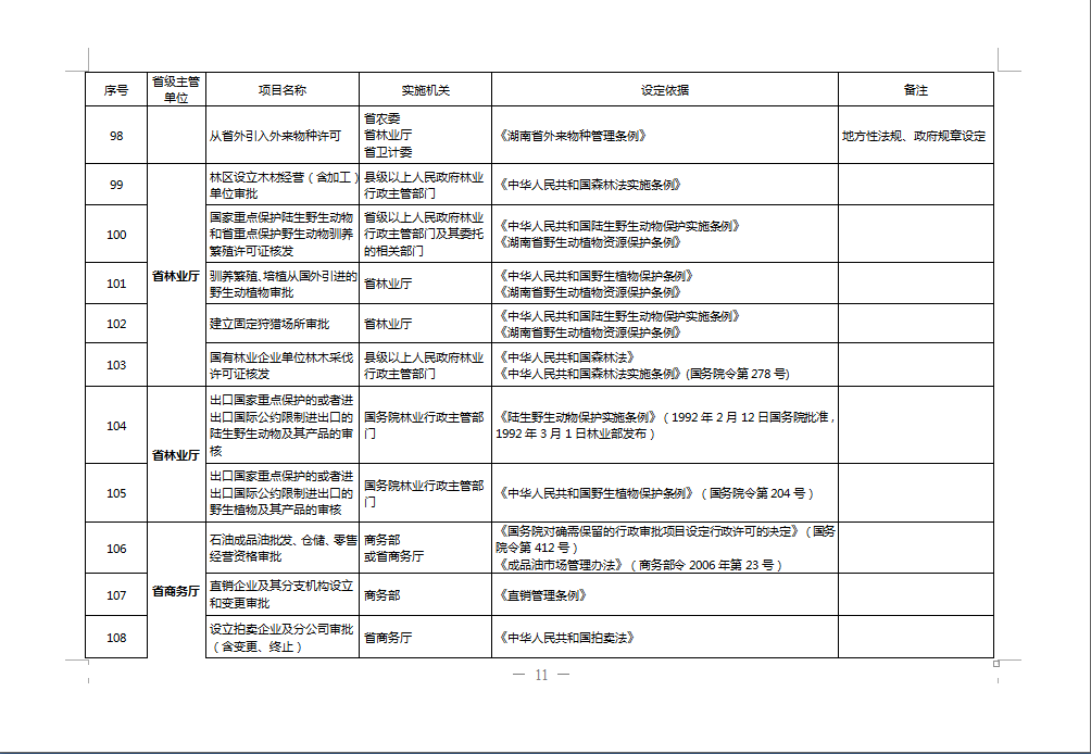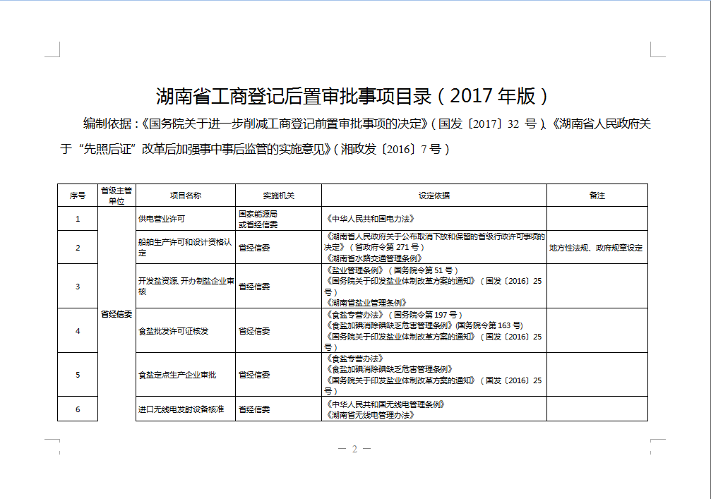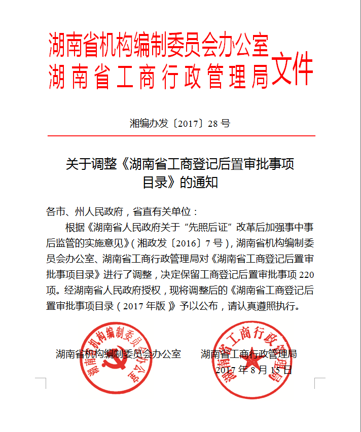 關於調整《湖南省工商登記後置審批事項 目錄》的通知