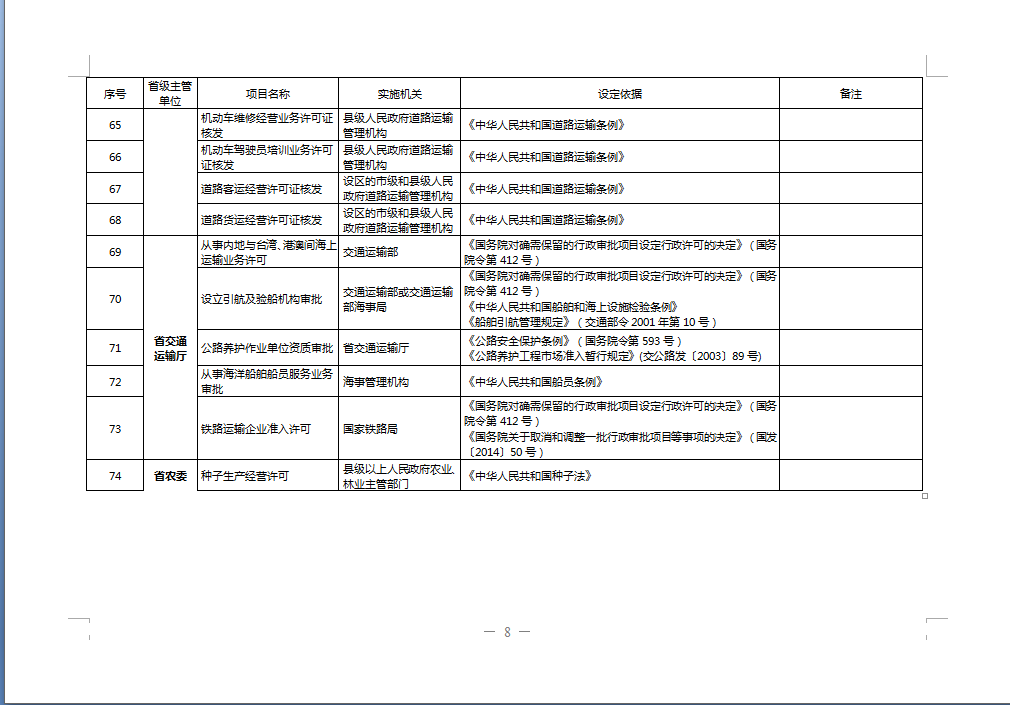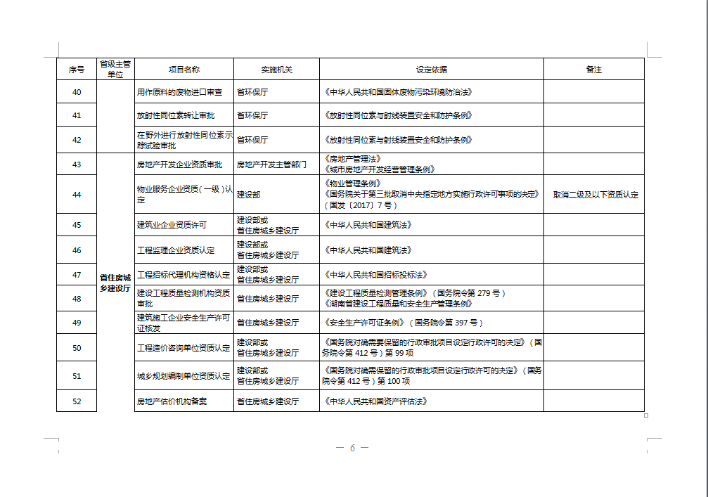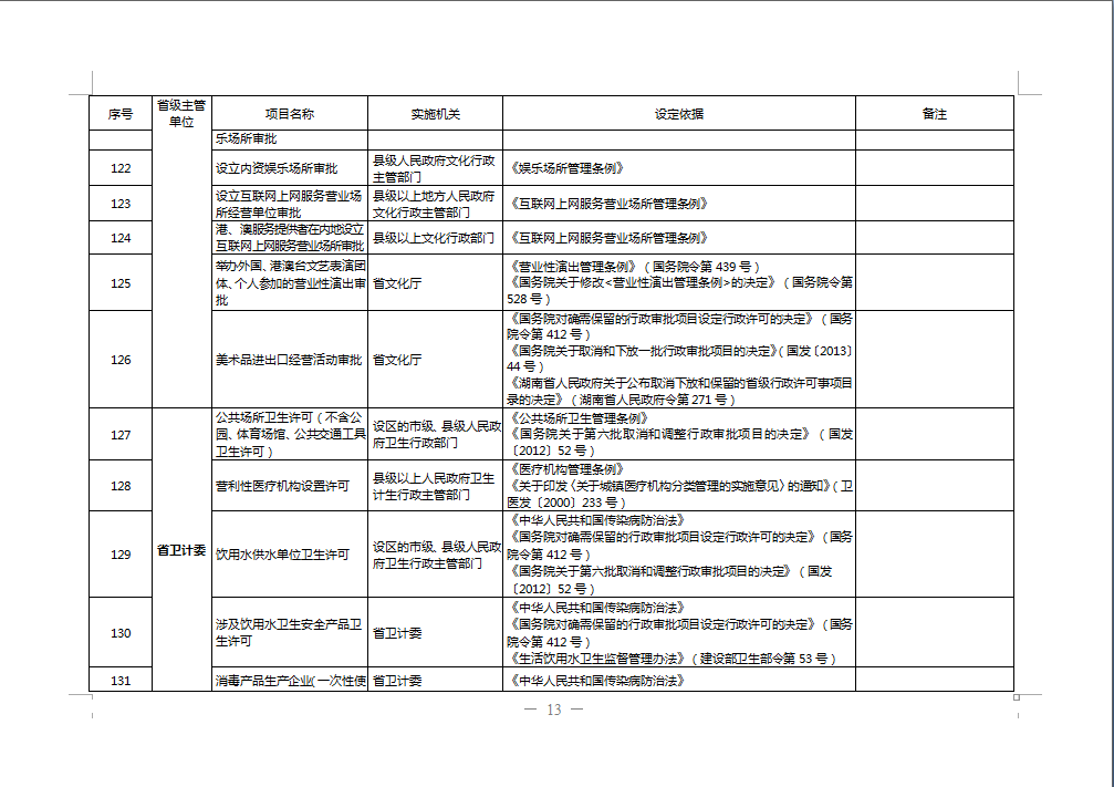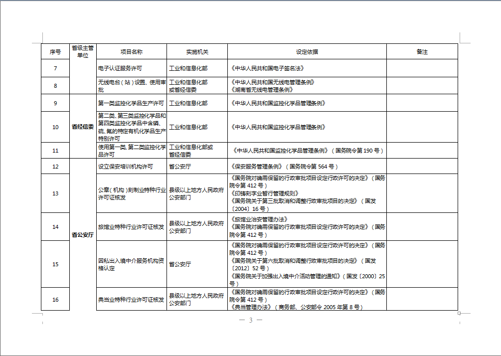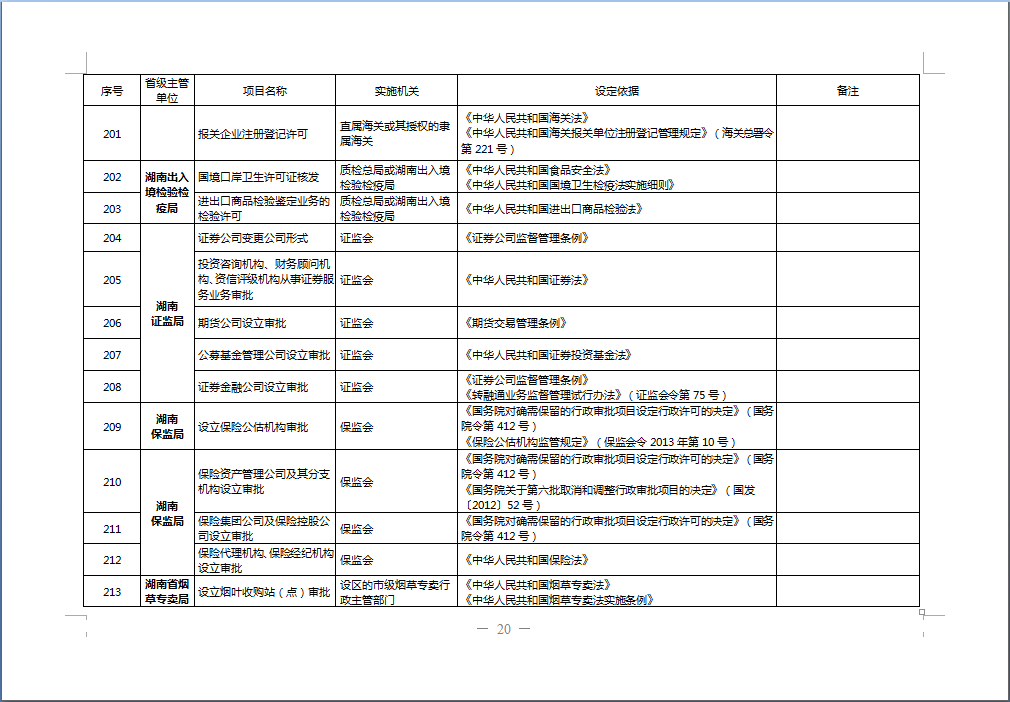 關於調整《湖南省工商登記後置審批事項 目錄》的通知