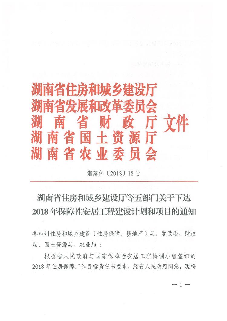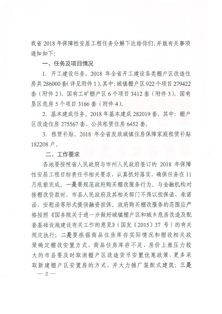 2018年保障性安居工程建設計劃和項目的通知