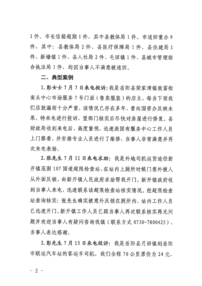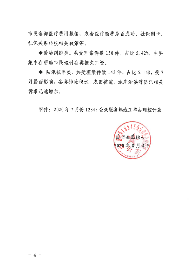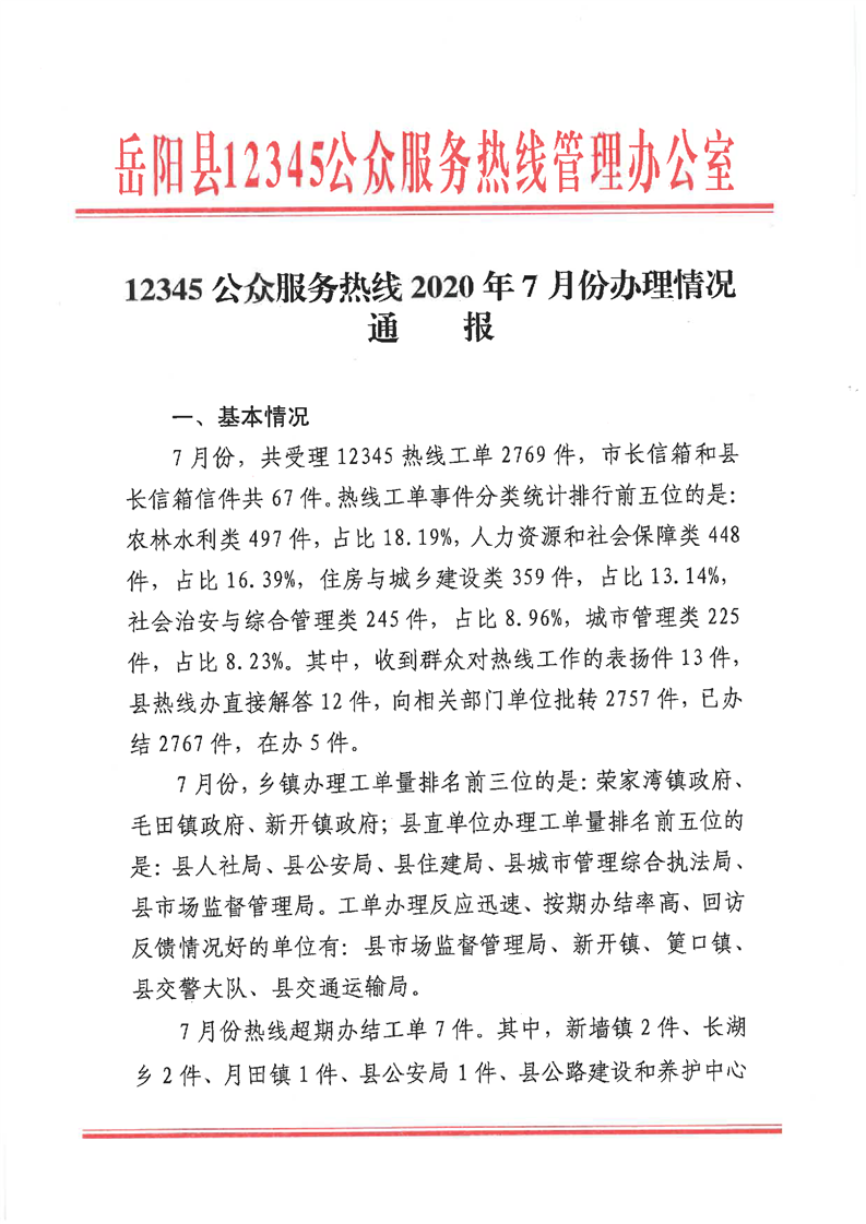 12345公眾服務熱線2020年7月份辦理情況通報
