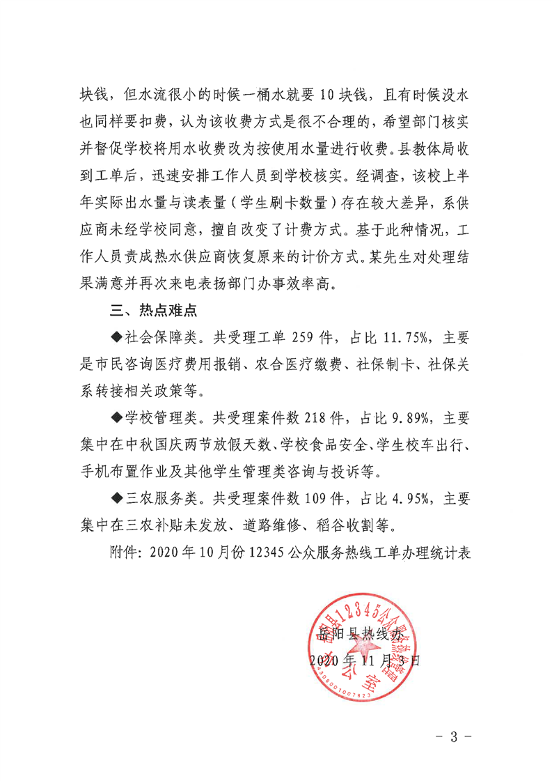12345公眾服務熱線2020年10月份辦理情況通報