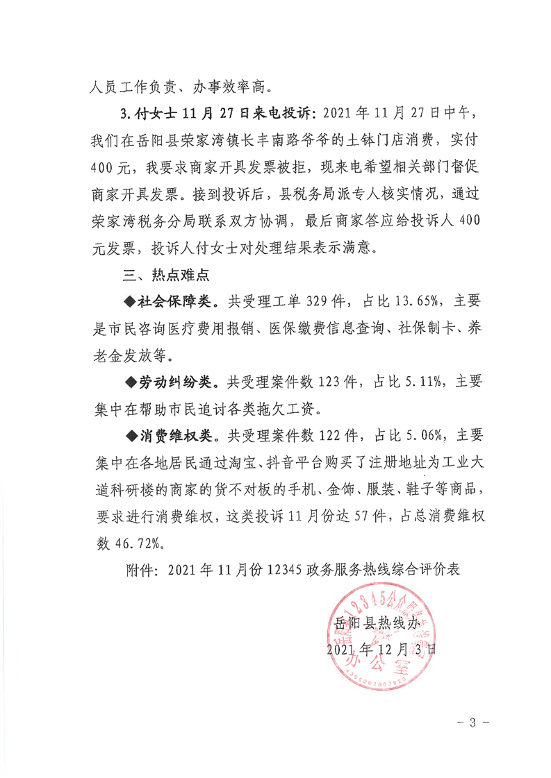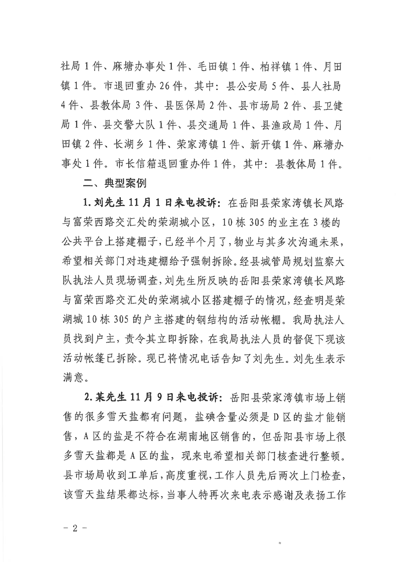 嶽陽縣12345公眾服務熱線2021年11月辦理情況通報