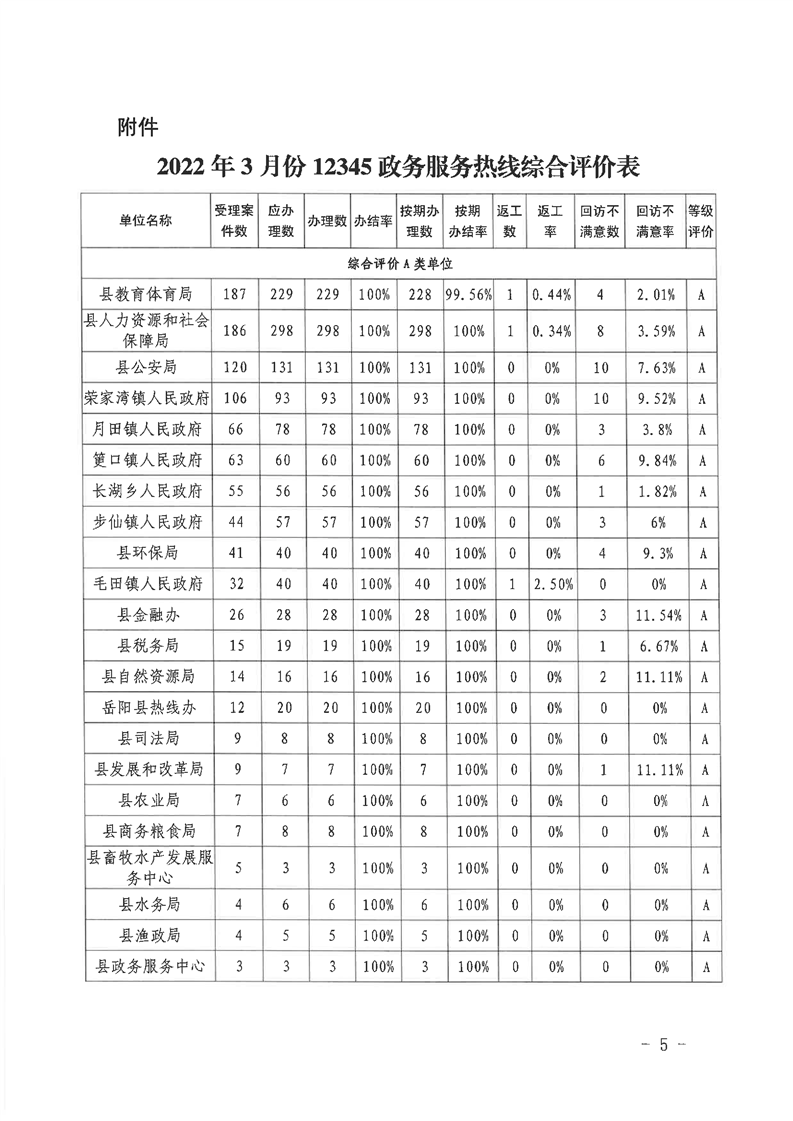 嶽陽縣12345公眾服務熱線2022年3月辦理情況通報