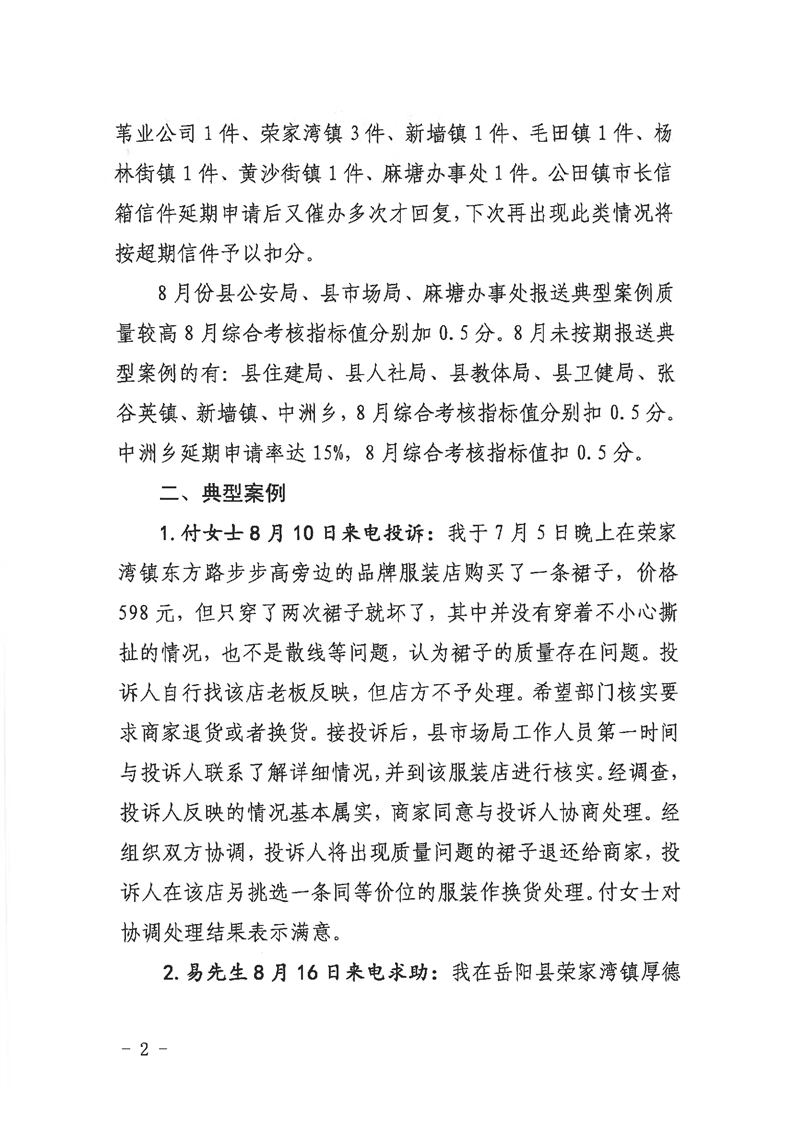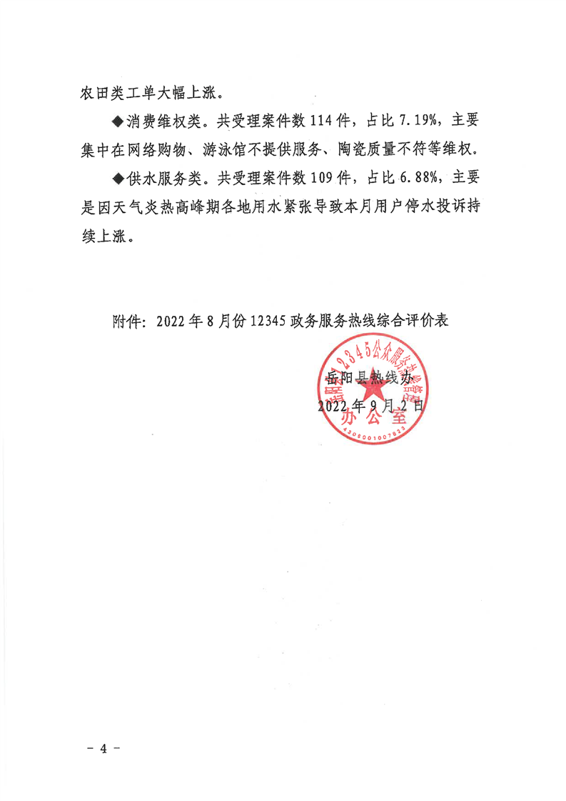 嶽陽縣12345公眾服務熱線2022年8月辦理情況通報
