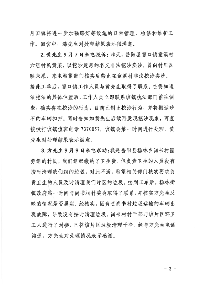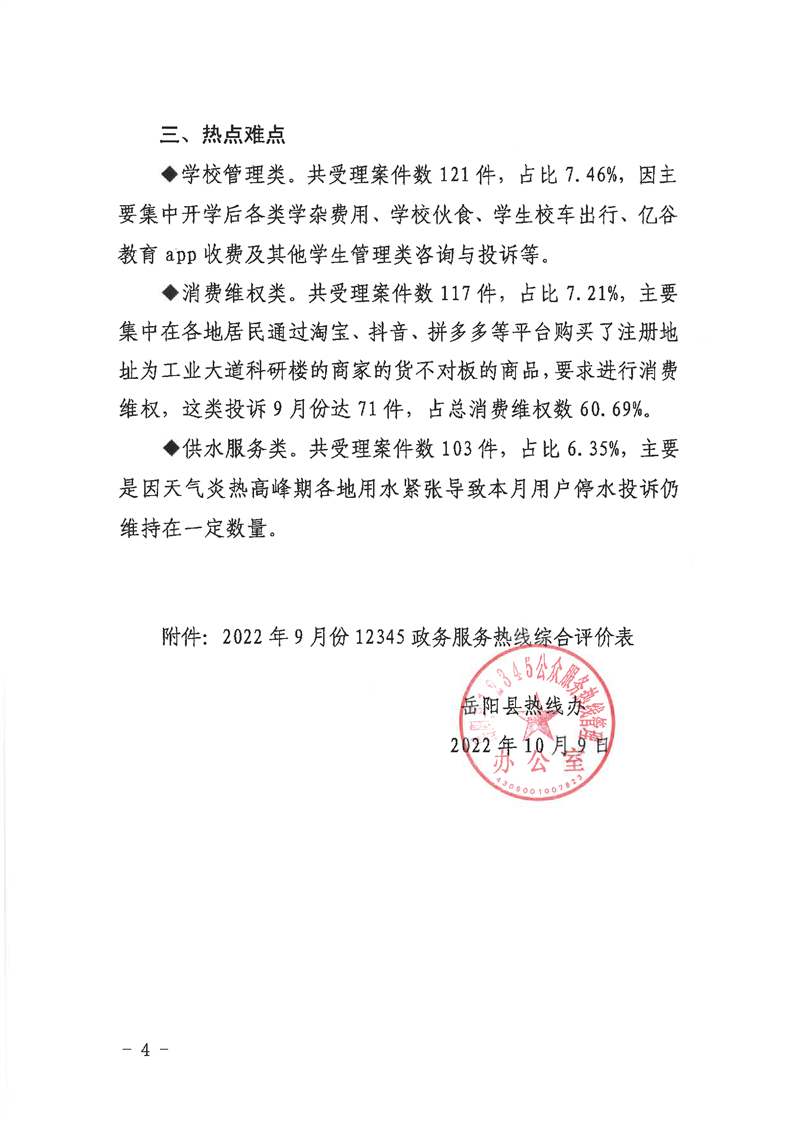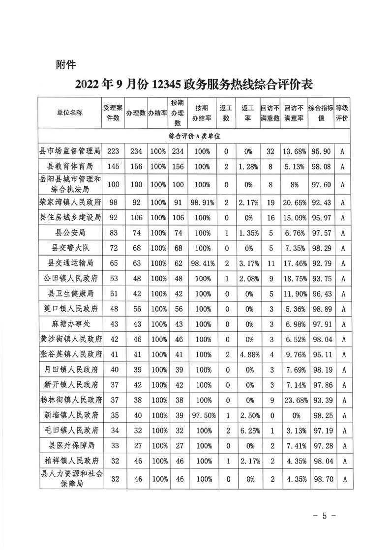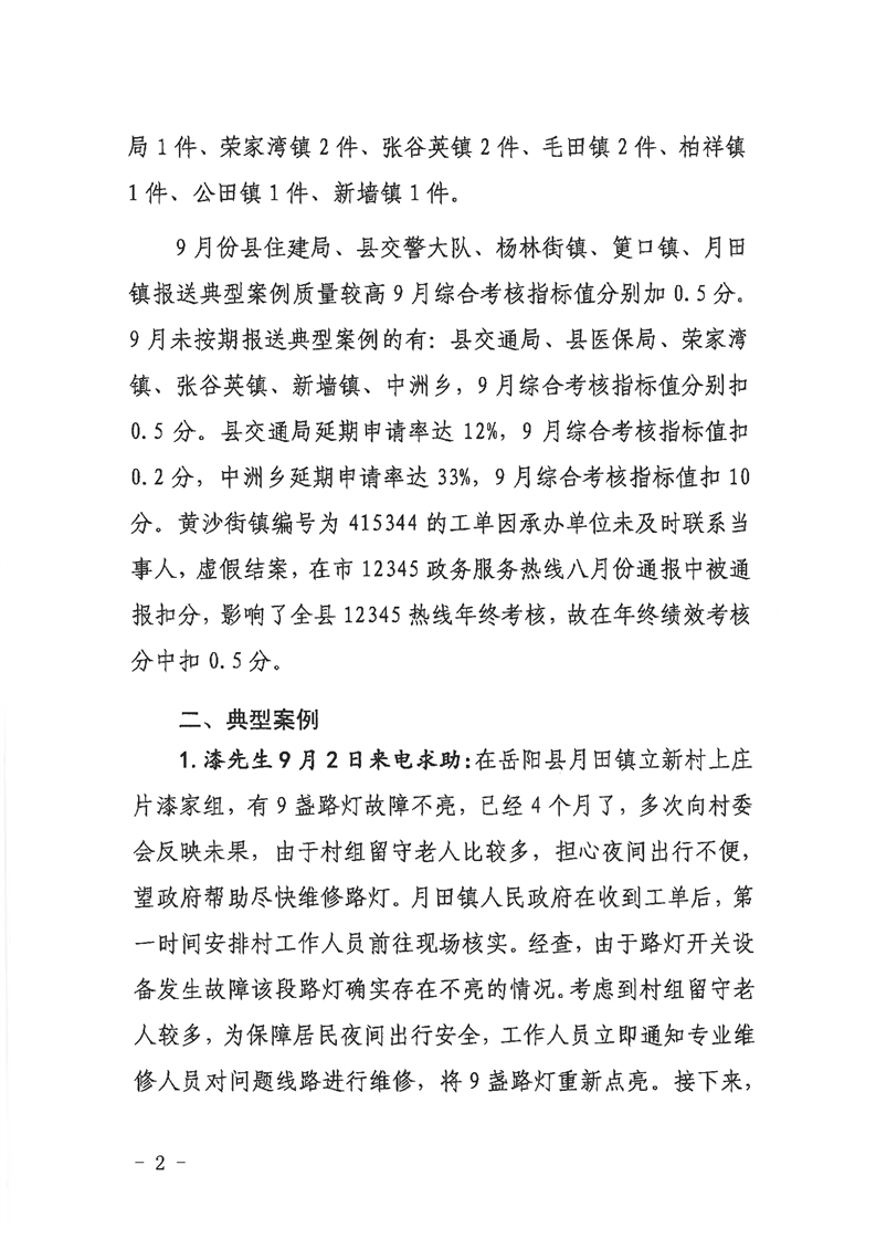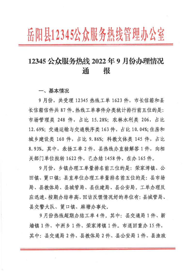 嶽陽縣12345公眾服務熱線2022年9月辦理情況通報