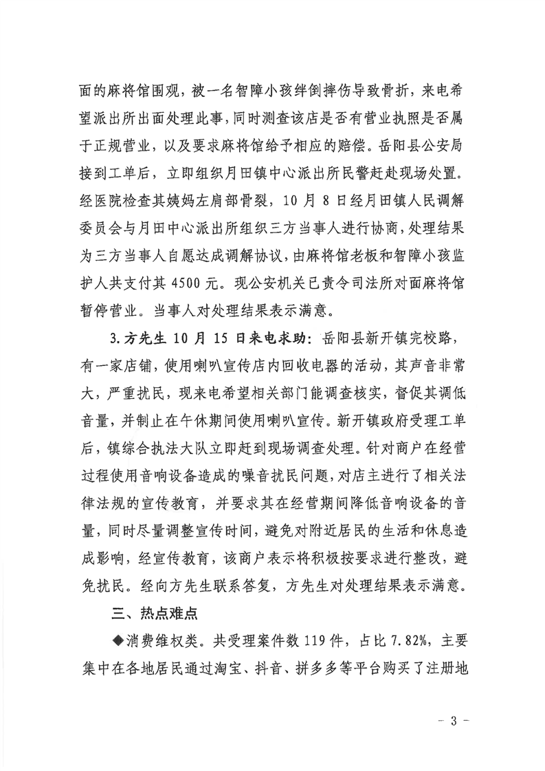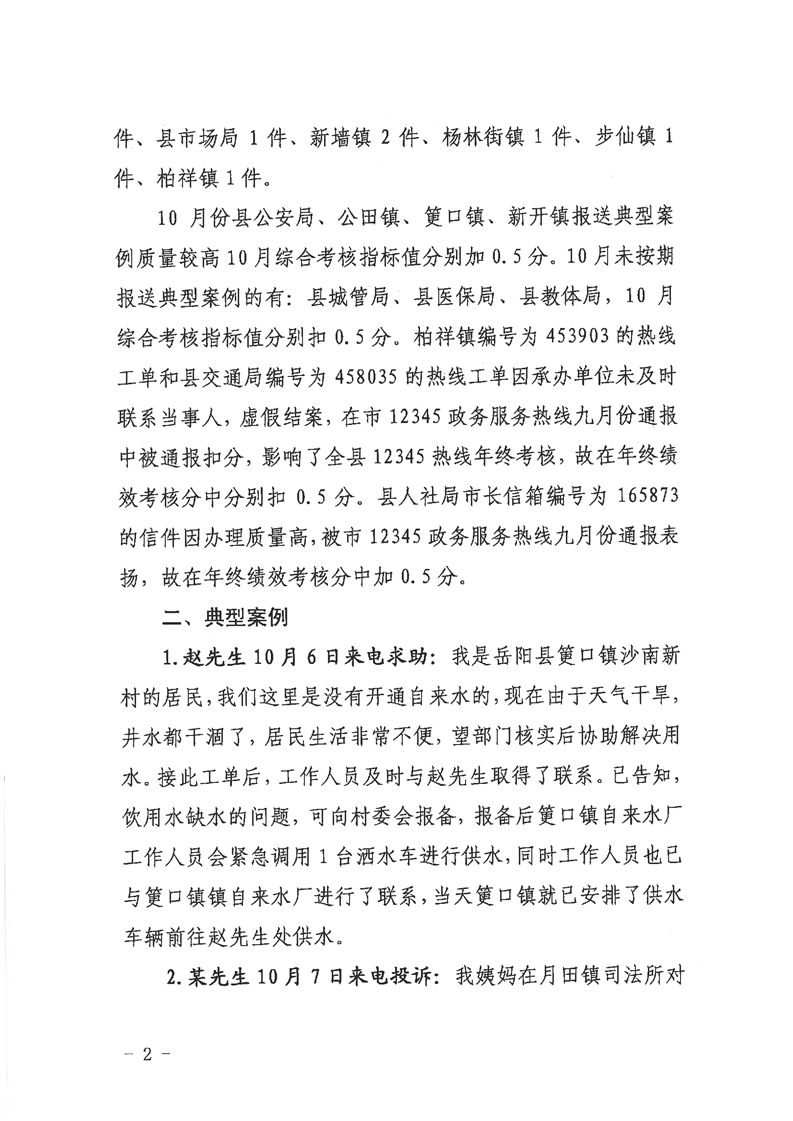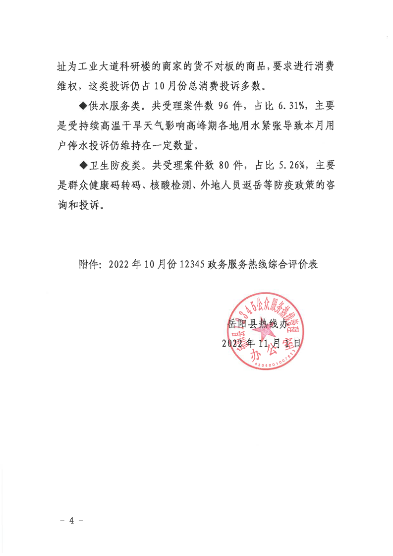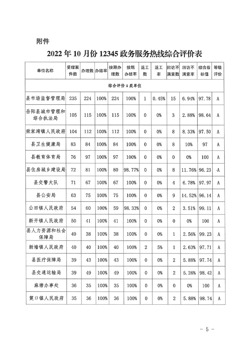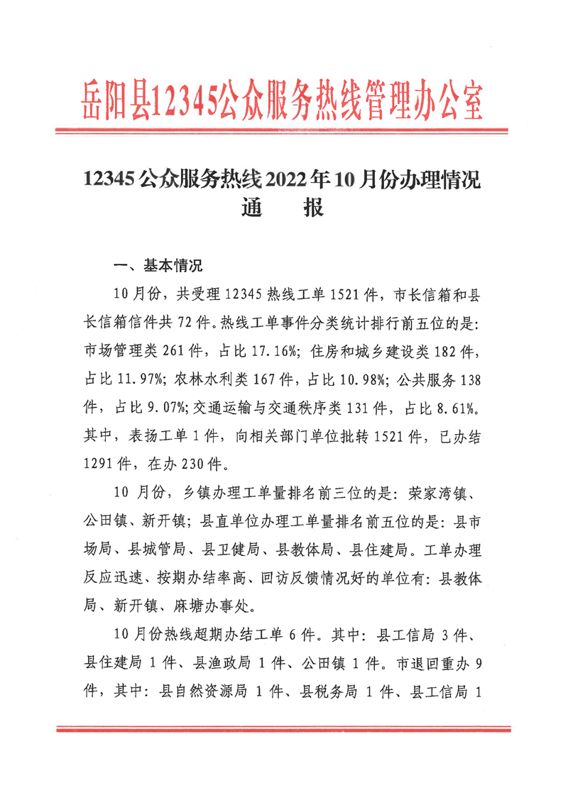 嶽陽縣12345公眾服務熱線2022年10月辦理情況通報