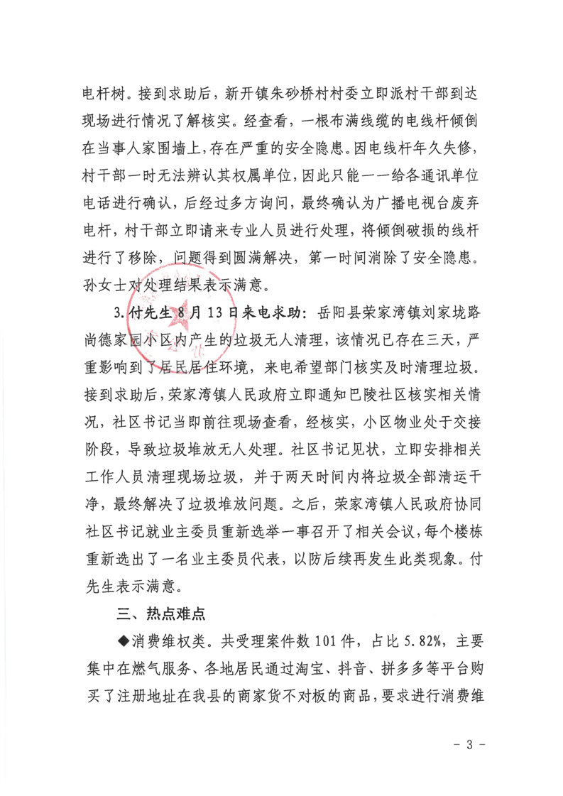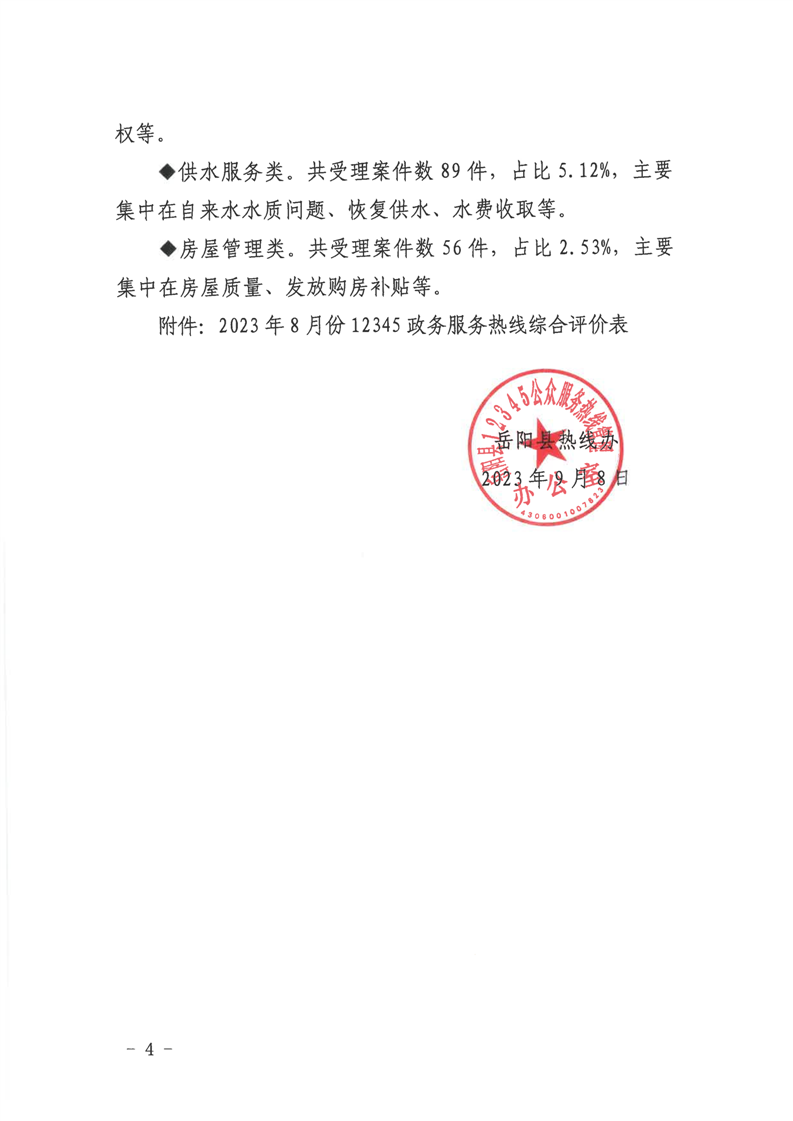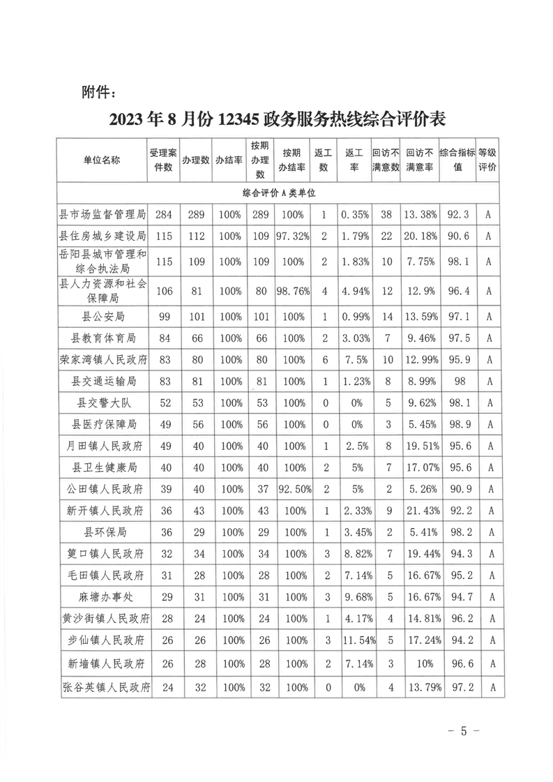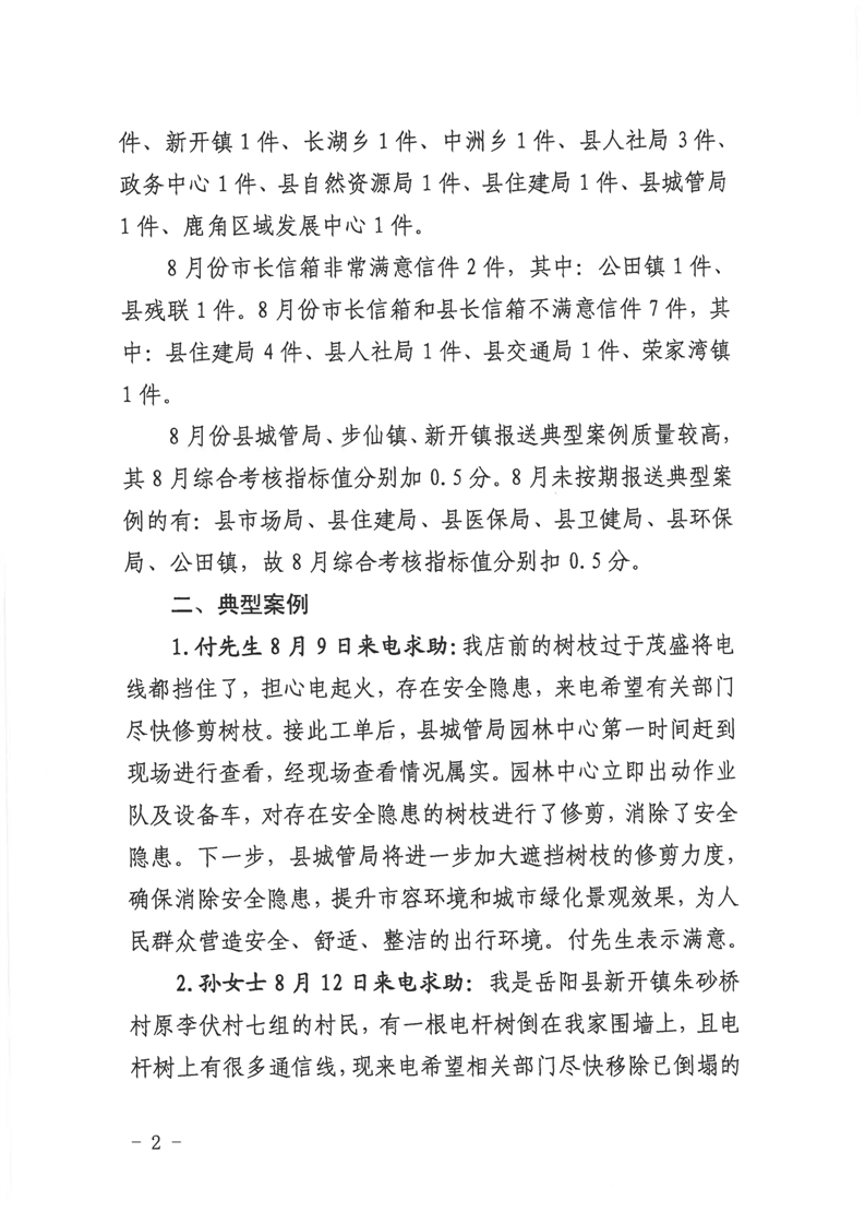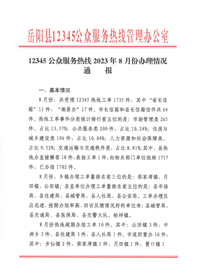 嶽陽縣12345公眾服務熱線2023年8月份辦理情況通報