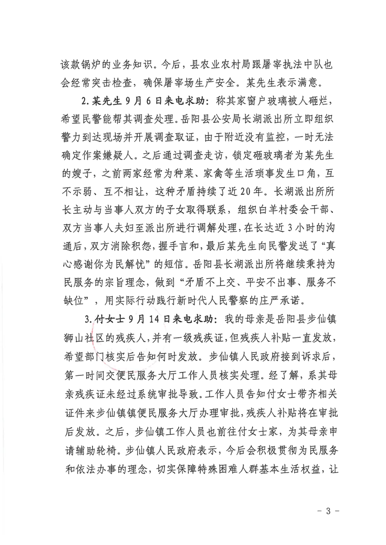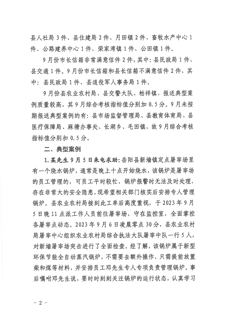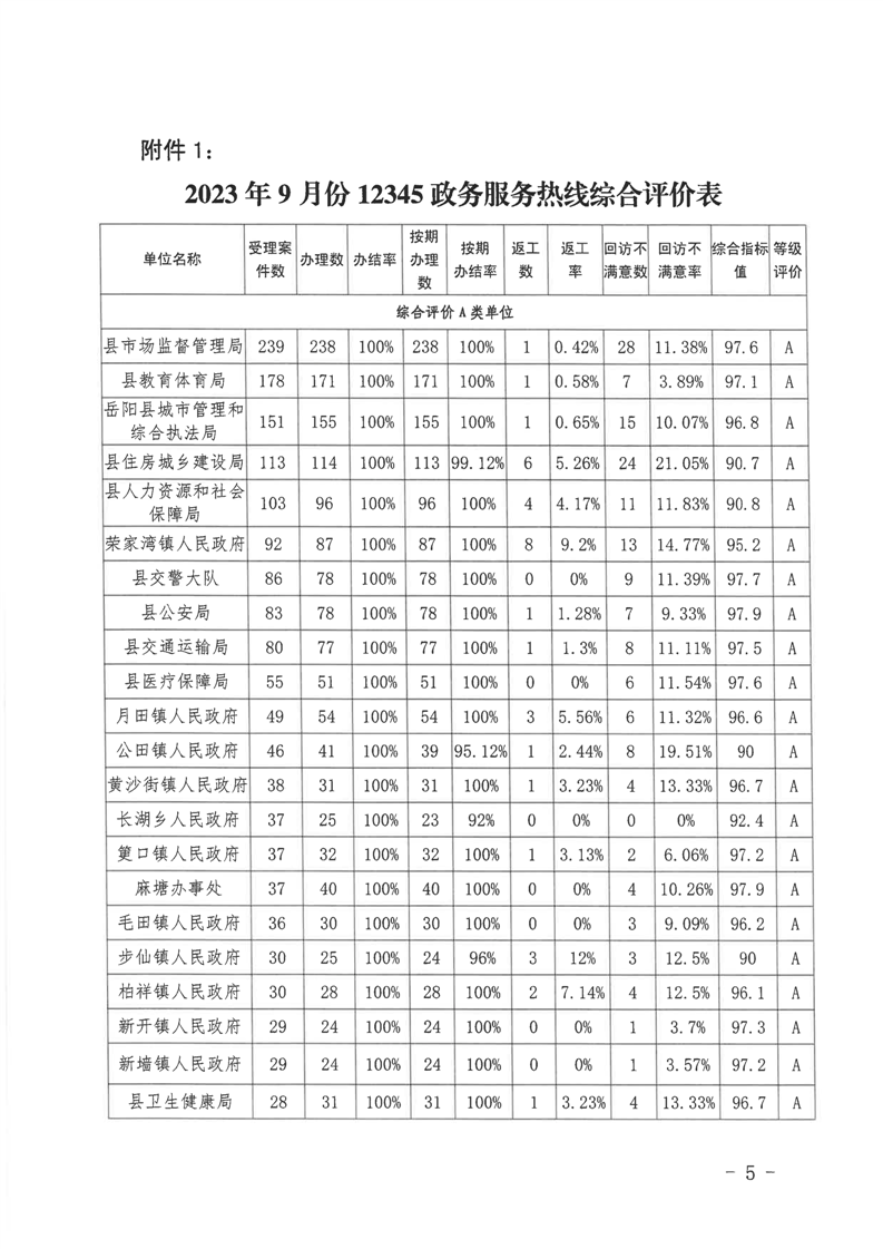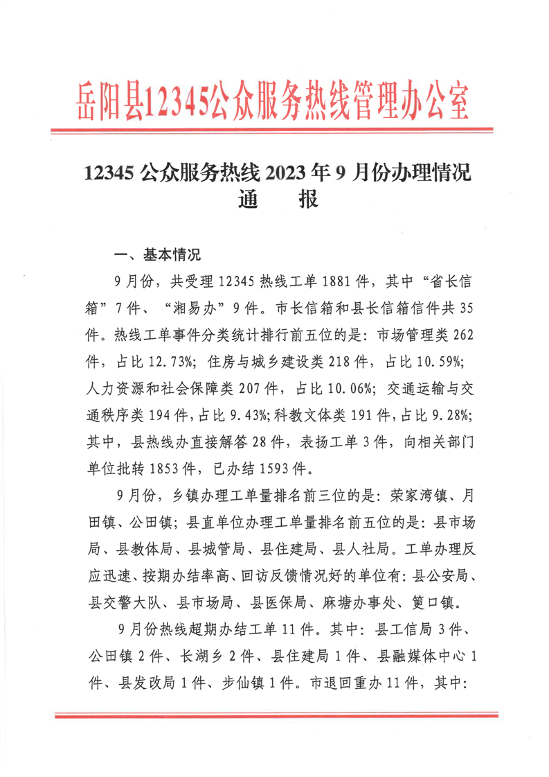 嶽陽縣12345公眾服務熱線2023年9月份辦理情況通報