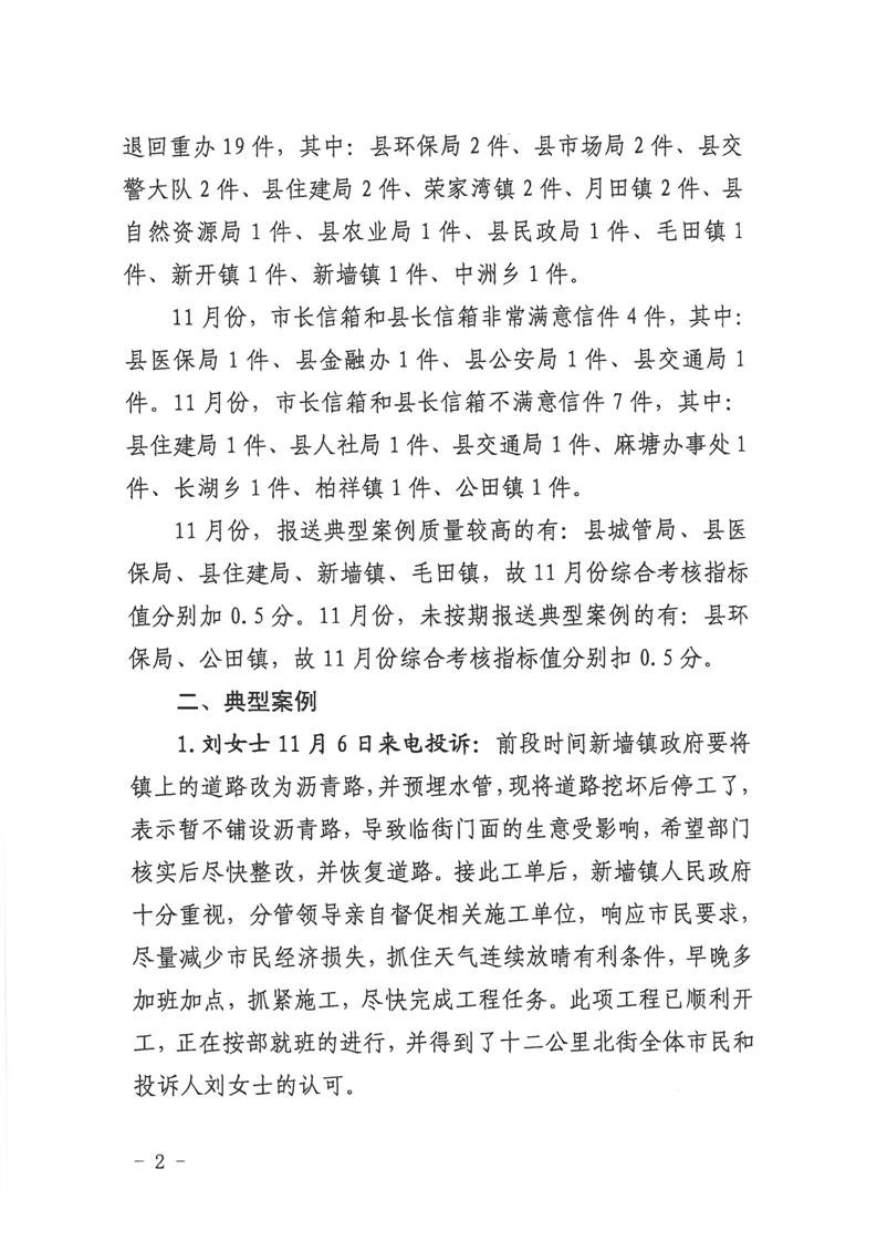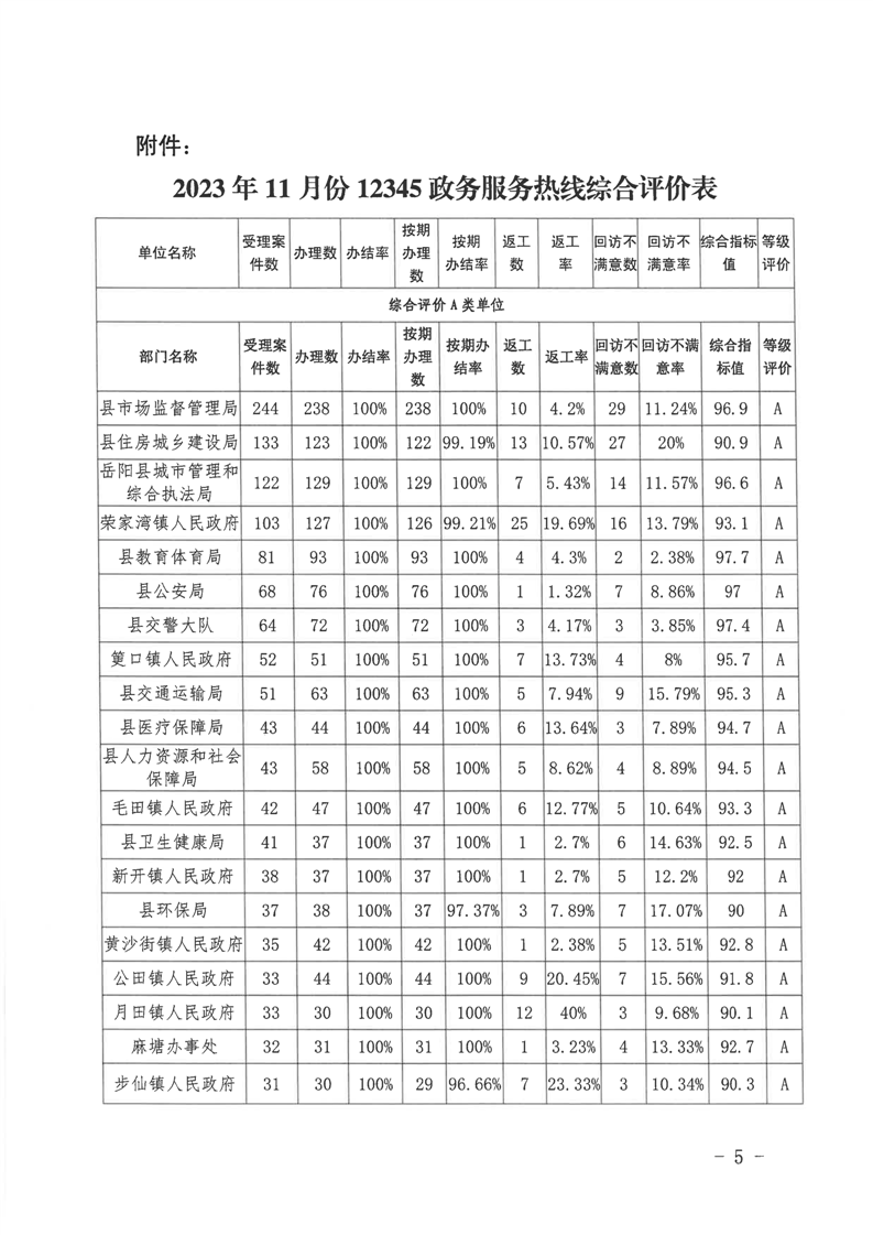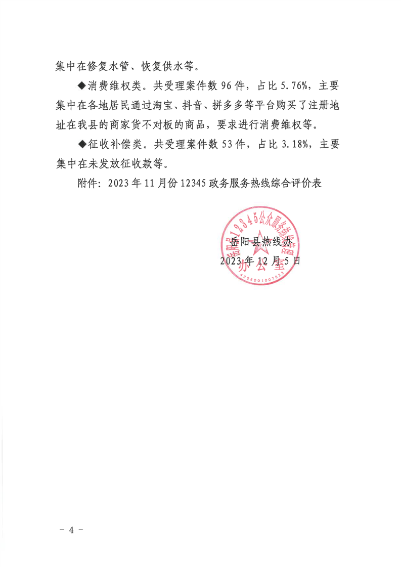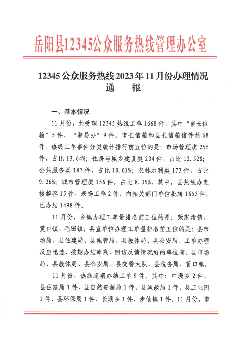 12345公眾服務熱線2023年11月份辦理情況通報