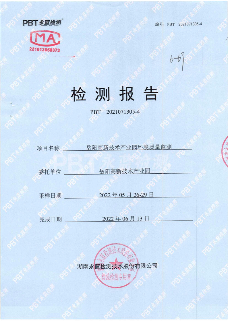 2022年度第二季度嶽陽高新技術產業園區環境質量監測