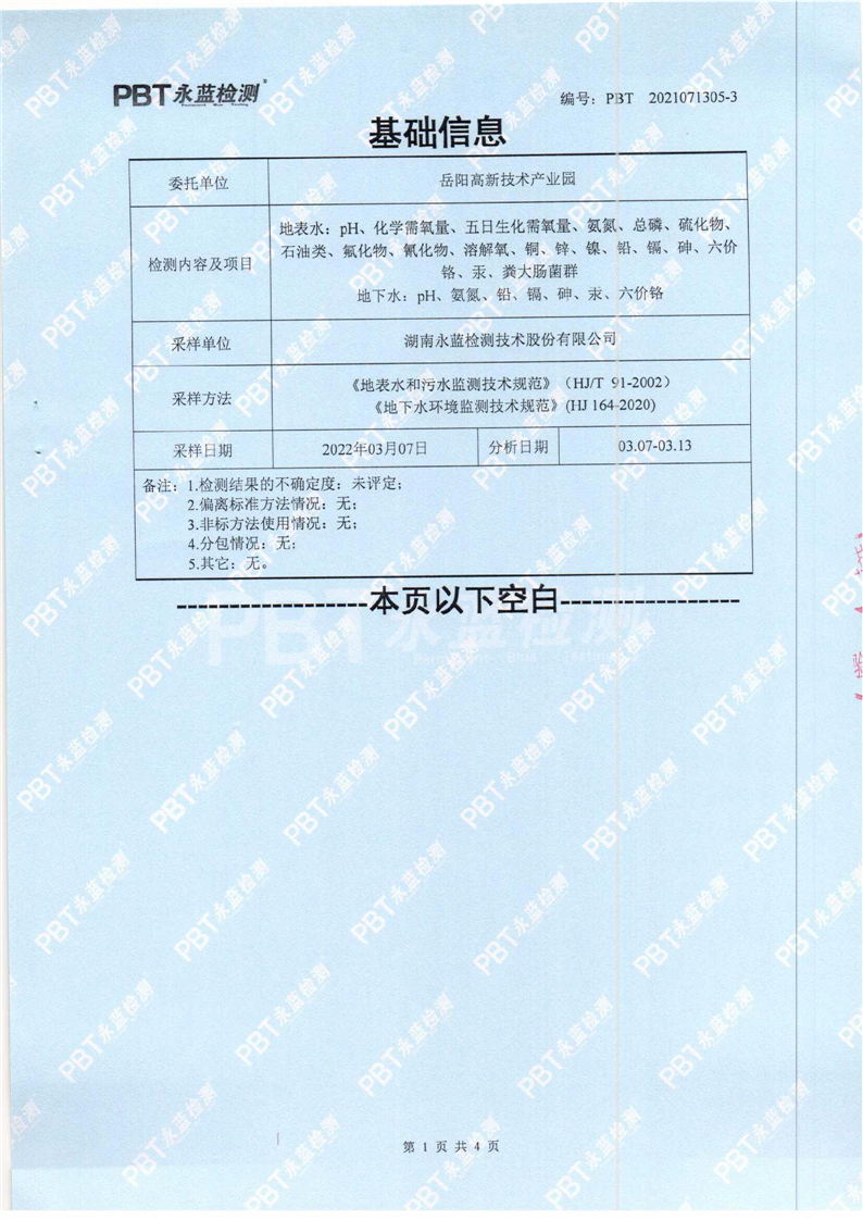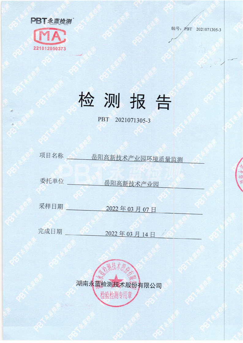 2022年度第一季度嶽陽高新技術產業園區環境質量監測