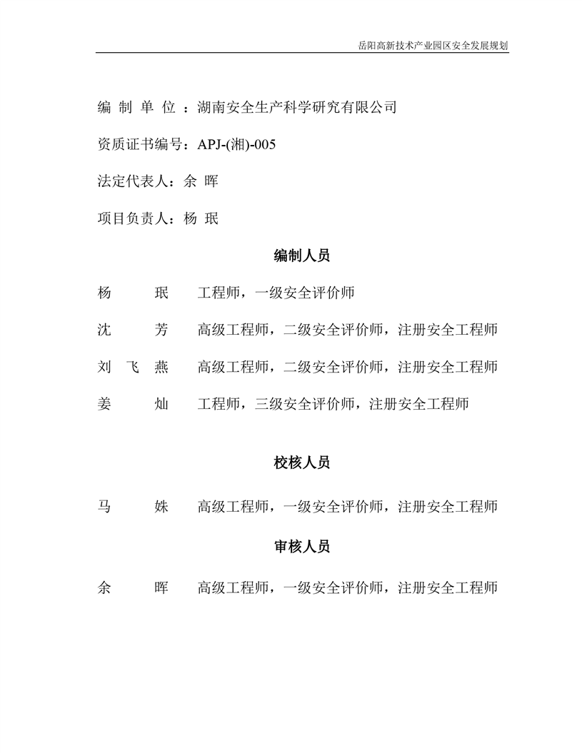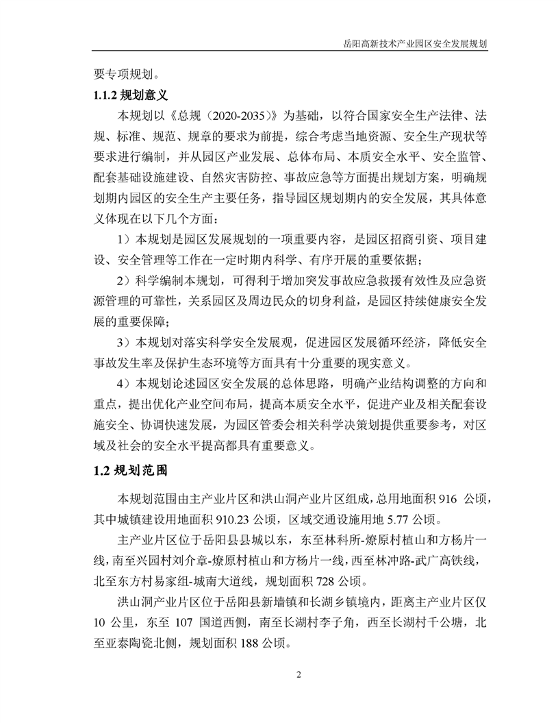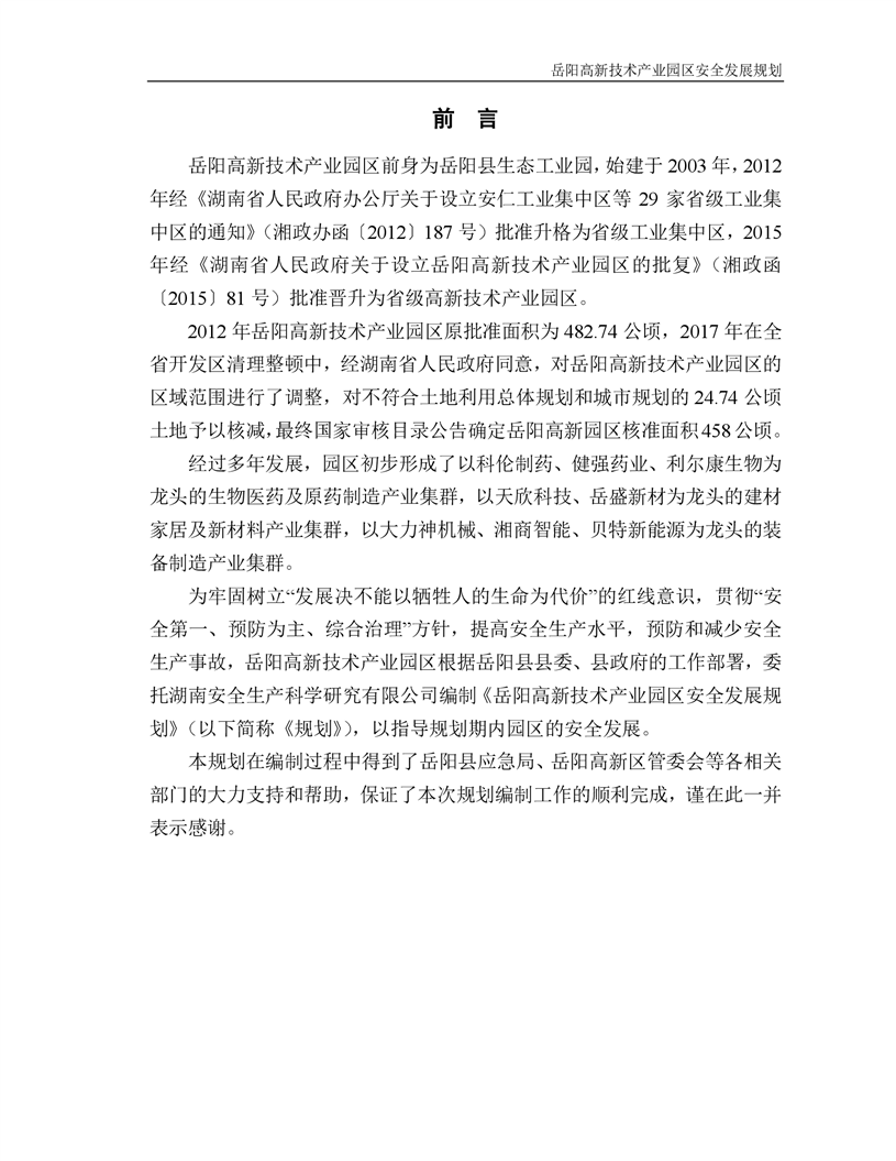嶽陽高新技術產業園區安全發展規劃