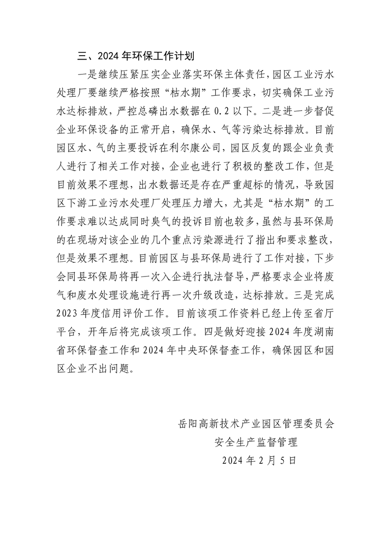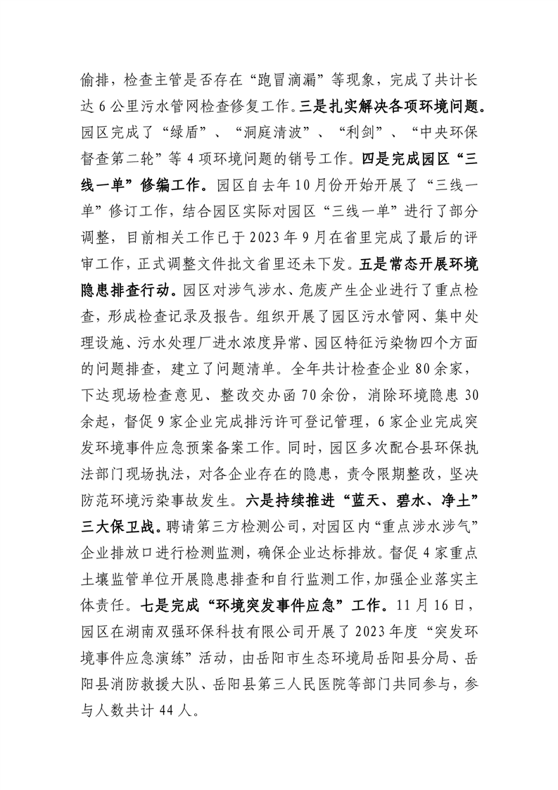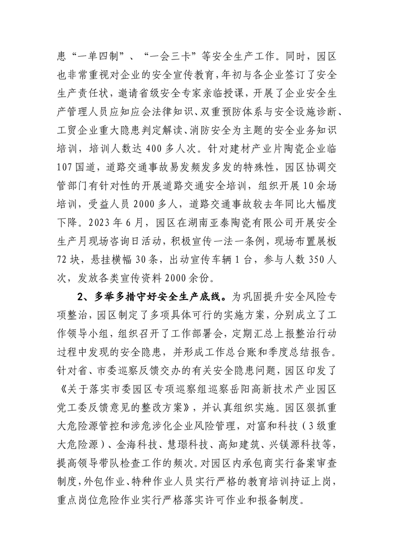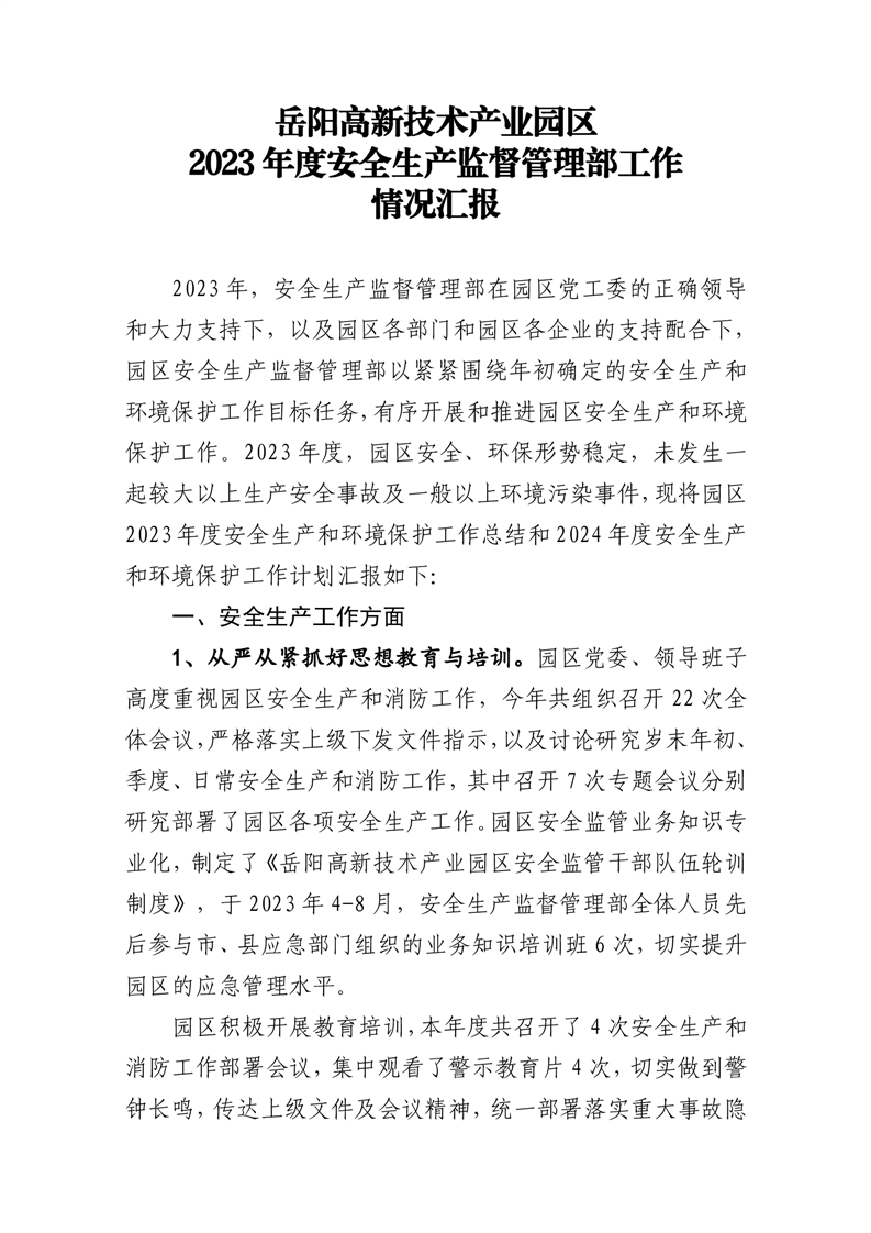 嶽陽高新技術產業園區2023年度安全生產監督管理部工作情況匯報
