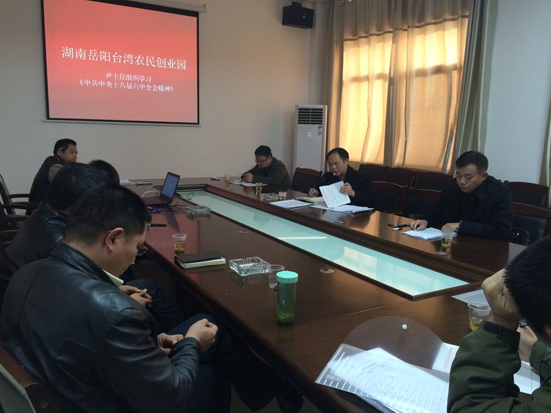 2016-12-16下午,在園區嶽陽湘佳牧業有限公司會議室,尹主任組織幹部和企業一起學習了中共中央十八屆六中全會精神係列文件。