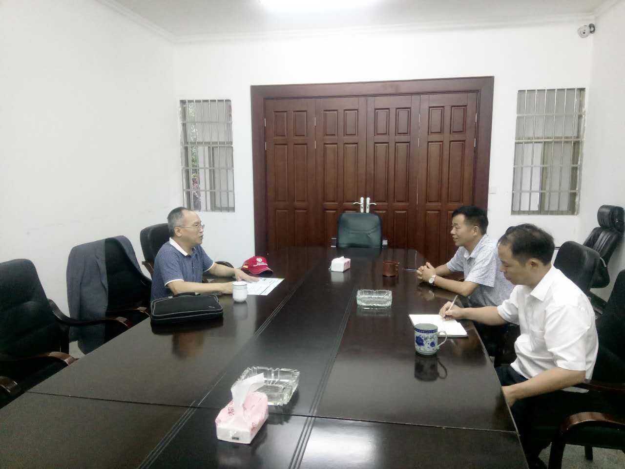 2017-7-1台灣百威國際生物股份有限公司、金百威生物科技有限公司大陸業務副總李兆陽先生來園區考察,台創園主任鄒飛躍、副主任尹愛華與李兆陽先生結合嶽陽農業資源優勢、特色產業,就嶽陽台創園產業發展現場交流。