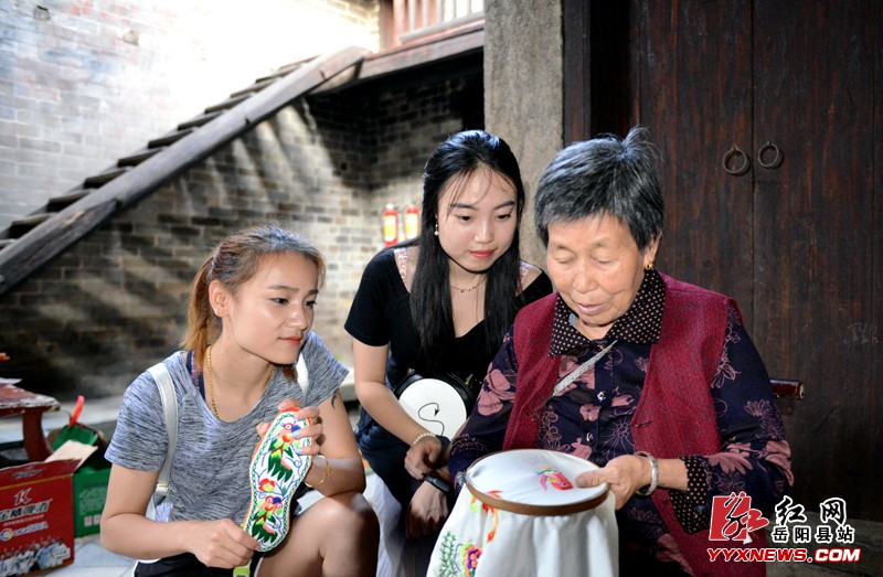 (村裏老人演示傳統手藝繡花)