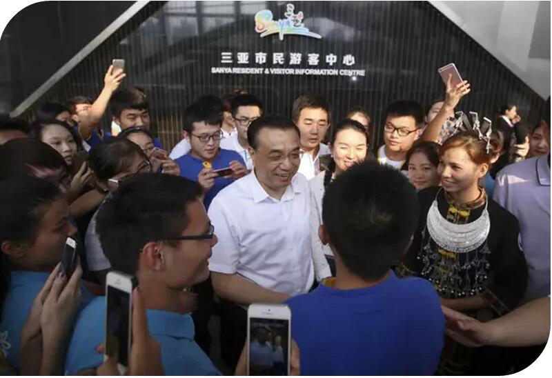 2016-3-,李克強總理在三亞市民遊客中心考察時說,海南不僅要完善旅遊設施“硬件”,同時要全麵提升服務“軟件”。現代旅遊業不僅是服務業,它涵蓋一二三全部產業。作為國際旅遊島,海南要把現代旅遊業做優做強,以此帶動一二三產業全麵升級。