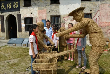 出而作,落而息,鑿井而飲,耕田而食。在民俗文化館前的田壟裏,犁地、播種、插秧、收割及牧童放牛等幾組由稻草製作的藝術作品錯落有致地擺放在稻田中,將一些早期農村生產生活的場景活靈活現展現出來了。