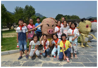 “這是打稻穀,以前沒有機械收割,稻穀脫粒全部依靠人工,手抱禾把,一叢一叢的摔打撞擊,才使得成熟的穀子脫離稻穗,然後再經過風車將稻穀和雜碎分離……”。張穀英管理處的袁嗲邊帶孩子們參觀邊講述每個稻草人的故事和來曆,讓孩子們對農耕過程有了更進一步的了解。